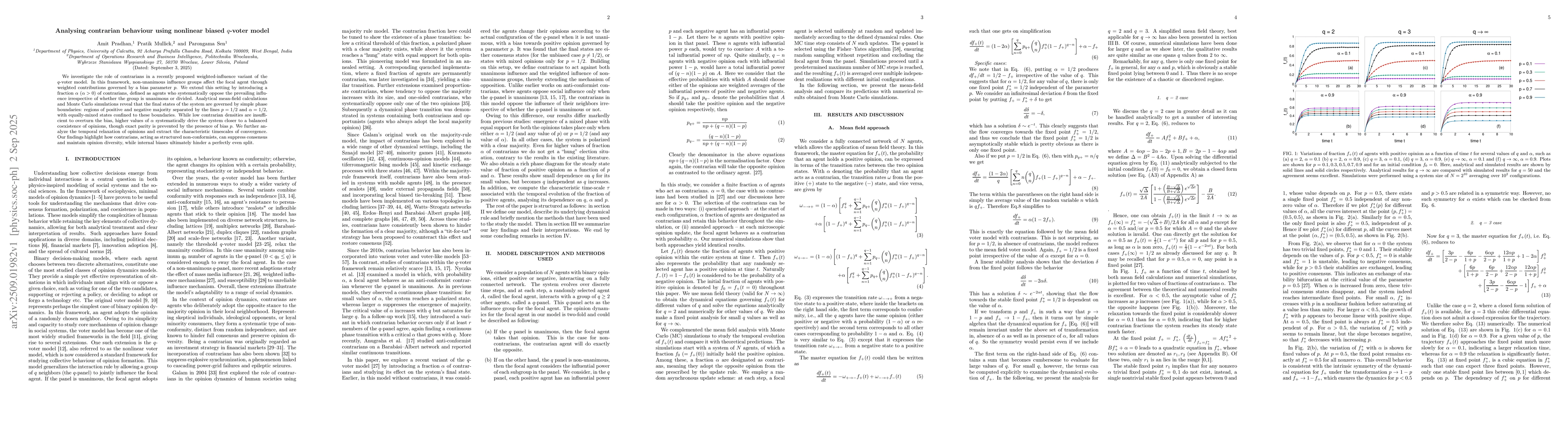 We investigate the role of contrarians in a recently proposed weighted-influence variant of the $q$-voter model. In this framework, non-unanimous influence groups affect the focal agent through weighted contributions governed by a bias parameter $p$. We extend this setting by introducing a fraction $\alpha$ ($\alpha> 0$) of contrarians, defined as agents who systematically oppose the prevailing influence irrespective of whether the group is unanimous or divided. Analytical mean-field calculations and Monte Carlo simulations reveal that the final states of the system are governed by simple phase boundaries: regions of positive and negative majority separated by the lines $p=1/2$ and $\alpha=1/2$, with equally-mixed states confined to these boundaries. While low contrarian densities are insufficient to overturn the bias, higher values of $\alpha$ systematically drive the system closer to a balanced coexistence of opinions, though exact parity is prevented by the presence of bias $p$. We further analyze the temporal relaxation of opinions and extract the characteristic timescales of convergence. Our findings highlight how contrarians, acting as structured non-conformists, can suppress consensus and maintain opinion diversity, while internal biases ultimately hinder a perfectly even split.