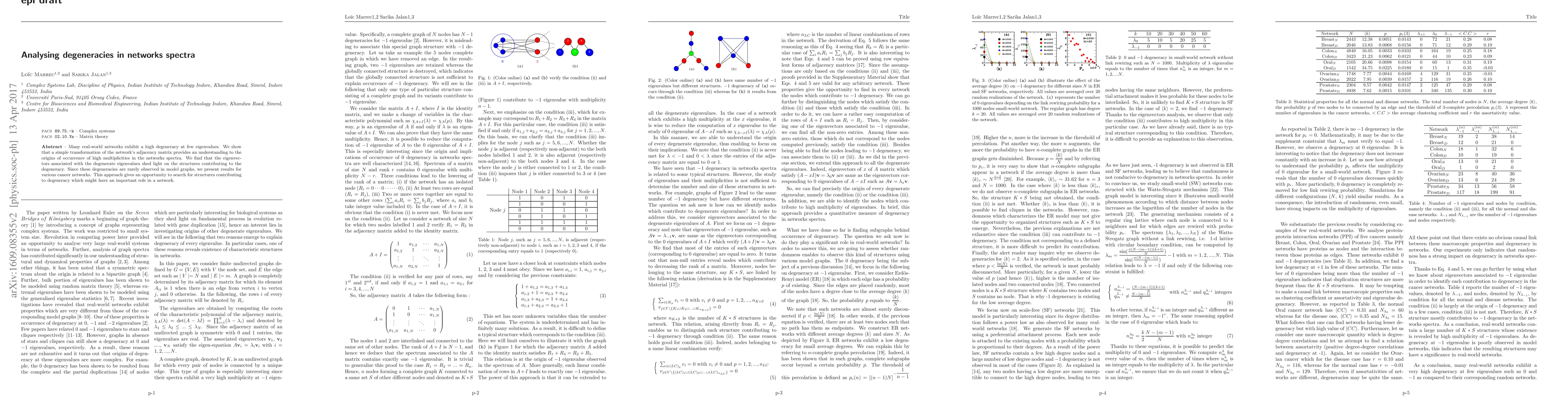Researchers discover a simple transformation to understand degeneracies in network spectra, revealing structures contributing to high multiplicities in cancer networks. This approach sheds light on potential roles of these structures in the network's behavior.