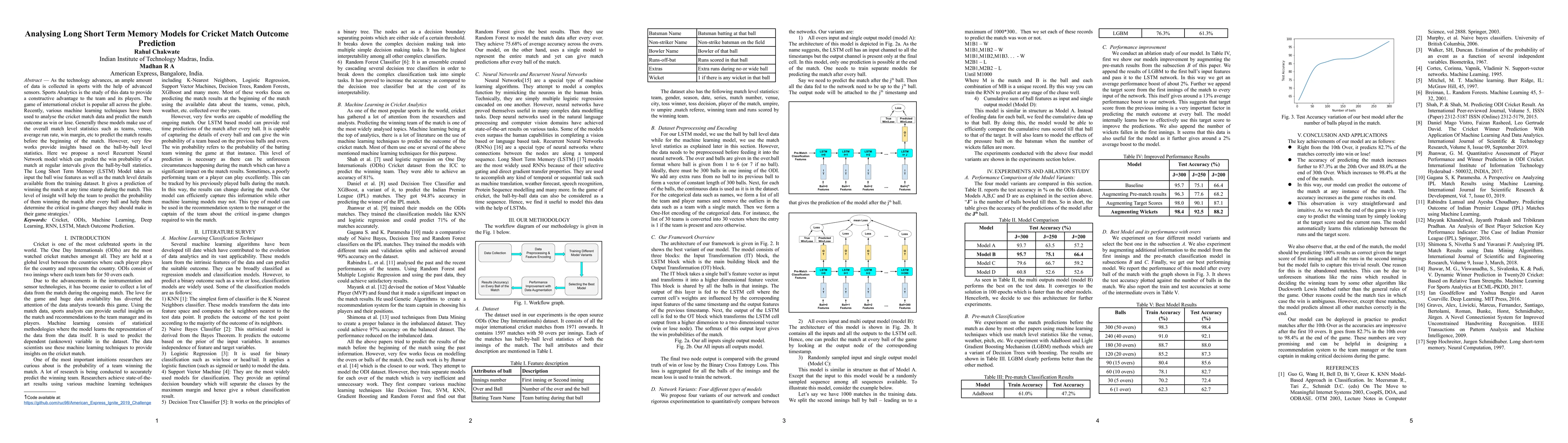 This paper proposes a Long Short Term Memory (LSTM) model to predict cricket match outcomes using both ball-by-ball and match-level statistics, offering insights into win probabilities at regular intervals during the game. This approach aims to provide teams with real-time strategic adjustments based on dynamic match data.