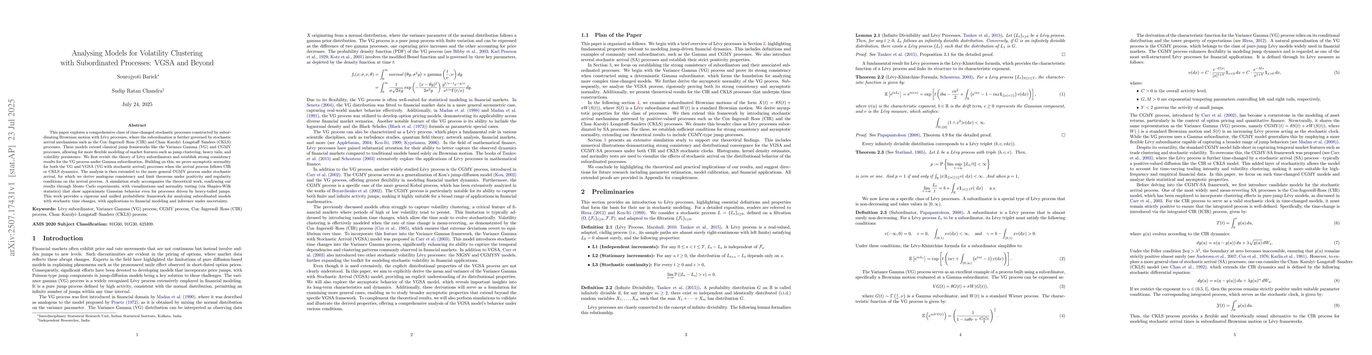 This paper explores a comprehensive class of time-changed stochastic processes constructed by subordinating Brownian motion with Levy processes, where the subordination is further governed by stochastic arrival mechanisms such as the Cox Ingersoll Ross (CIR) and Chan Karolyi Longstaff Sanders (CKLS) processes. These models extend classical jump frameworks like the Variance Gamma (VG) and CGMY processes, allowing for more flexible modeling of market features such as jump clustering, heavy tails, and volatility persistence. We first revisit the theory of Levy subordinators and establish strong consistency results for the VG process under Gamma subordination. Building on this, we prove asymptotic normality for both the VG and VGSA (VG with stochastic arrival) processes when the arrival process follows CIR or CKLS dynamics. The analysis is then extended to the more general CGMY process under stochastic arrival, for which we derive analogous consistency and limit theorems under positivity and regularity conditions on the arrival process. A simulation study accompanies the theoretical work, confirming our results through Monte Carlo experiments, with visualizations and normality testing (via Shapiro-Wilk statistics) that show approximate Gaussian behavior even for processes driven by heavy-tailed jumps. This work provides a rigorous and unified probabilistic framework for analyzing subordinated models with stochastic time changes, with applications to financial modeling and inference under uncertainty.