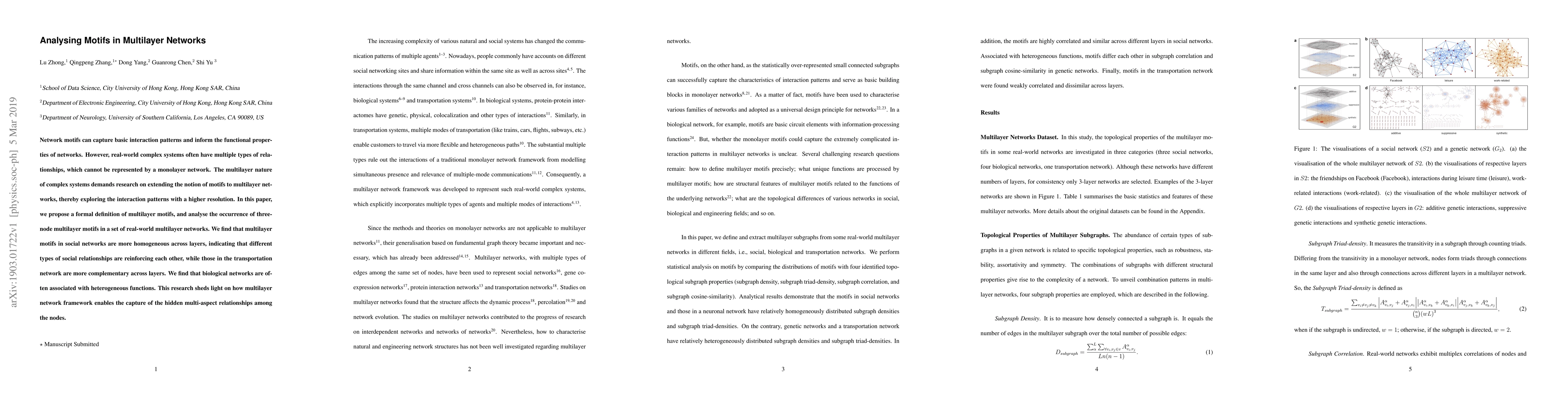 This paper proposes a formal definition of multilayer motifs to analyze complex systems with multiple relationship types. It finds that social networks exhibit reinforcing relationships across layers, while transportation networks show complementary relationships, and biological networks often have heterogeneous functions.