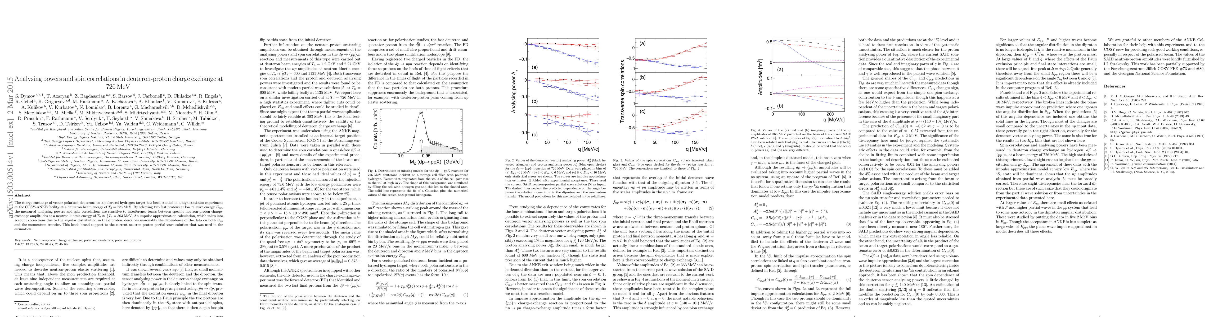 Researchers studied the charge exchange of deuterons on hydrogen targets at 726 MeV, finding that a calculation matching their data supports current neutron-proton partial-wave solutions.