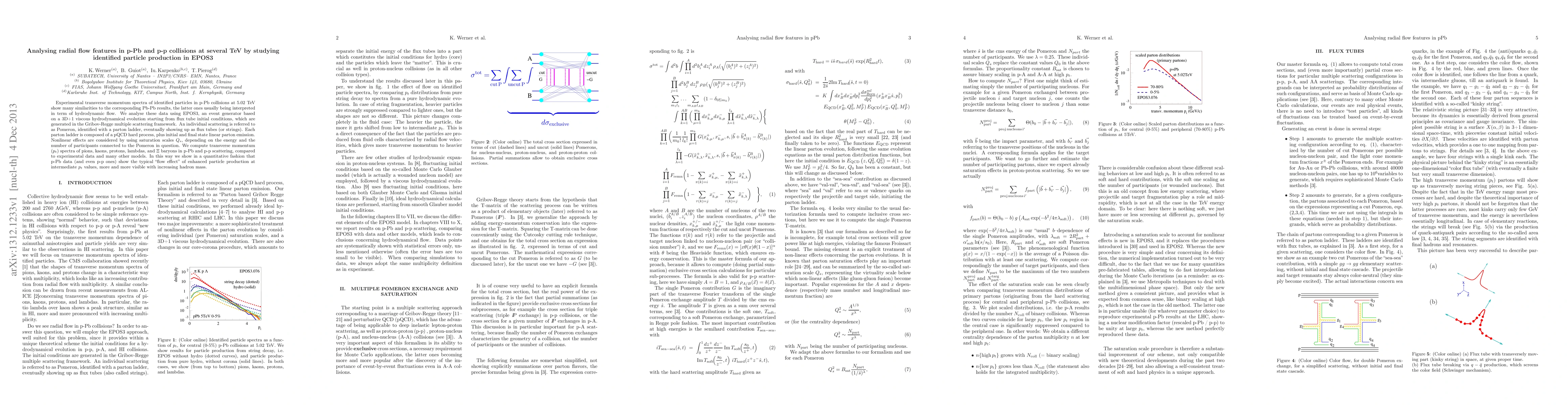 Experimental transverse momentum spectra of identified particles in p-Pb collisions at 5.02 TeV show many similarities to the corresponding Pb-Pb results, the latter ones usually being interpreted in term of hydrodynamic flow. We analyse these data using EPOS3, an event generator based on a 3D+1 viscous hydrodynamical evolution starting from flux tube initial conditions, which are generated in the Gribov-Regge multiple scattering framework. An individual scattering is referred to as Pomeron, identified with a parton ladder, eventually showing up as flux tubes (or strings). Each parton ladder is composed of a pQCD hard process, plus initial and final state linear parton emission. Nonlinear effects are considered by using saturation scales $Q_{s}$, depending on the energy and the number of participants connected to the Pomeron in question. We compute transverse momentum ($p_{t}$) spectra of pions, kaons, protons, lambdas, and $\Xi$ baryons in p-Pb and p-p scattering, compared to experimental data and many other models. In this way we show in a quantitative fashion that p-Pb data (and even p-p ones) show the typical ``flow effect'' of enhanced particle production at intermediate $p_{t}$ values, more and more visible with increasing hadron mass.
