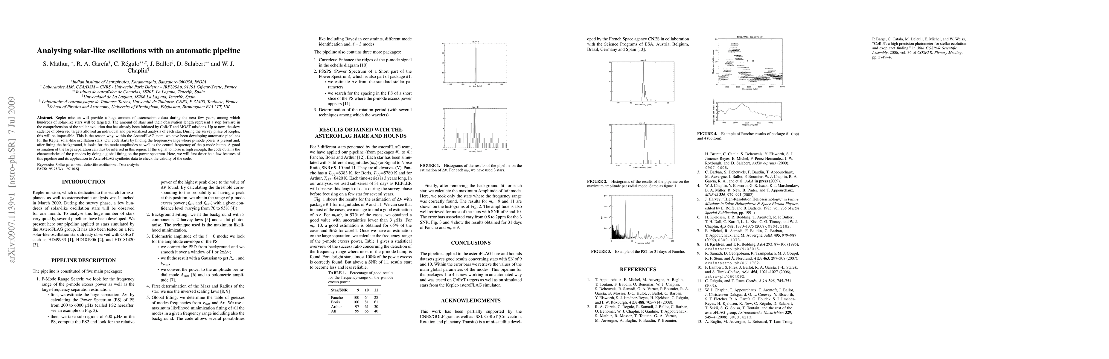 Kepler mission will provide a huge amount of asteroseismic data during the next few years, among which hundreds of solar-like stars will be targeted. The amount of stars and their observation length represent a step forward in the comprehension of the stellar evolution that has already been initiated by CoRoT and MOST missions. Up to now, the slow cadence of observed targets allowed an individual and personalized analysis of each star. During the survey phase of Kepler, this will be impossible. This is the reason why, within the AsteroFLAG team, we have been developing automatic pipelines for the Kepler solar-like oscillation stars. Our code starts by finding the frequency-range where p-mode power is present and, after fitting the background, it looks for the mode amplitudes as well as the central frequency of the p-mode hump. A good estimation of the large separation can thus be inferred in this region. If the signal to noise is high enough, the code obtains the characteristics of the p modes by doing a global fitting on the power spectrum. Here, we will first describe a few features of this pipeline and its application to AsteroFLAG synthetic data to check the validity of the code.