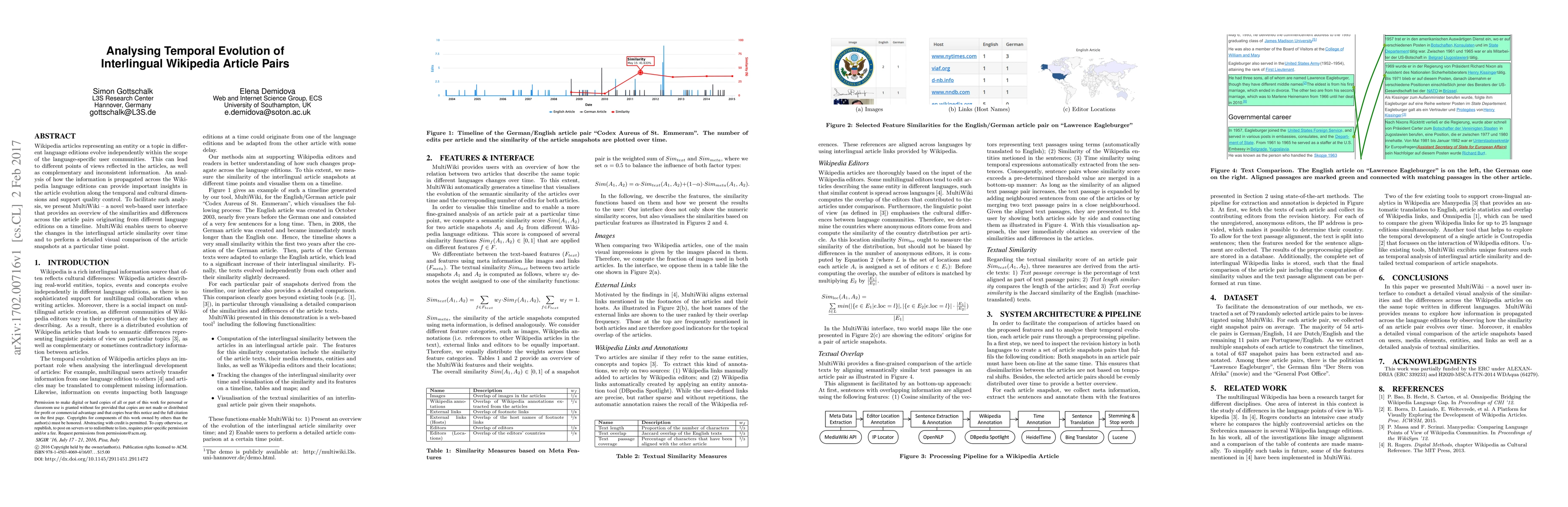 This paper analyzes the temporal evolution of interlingual Wikipedia articles, highlighting how they develop independently across different language editions. It introduces MultiWiki, a web-based interface that visualizes similarities and differences in article pairs over time, aiding in quality control and cultural insights.