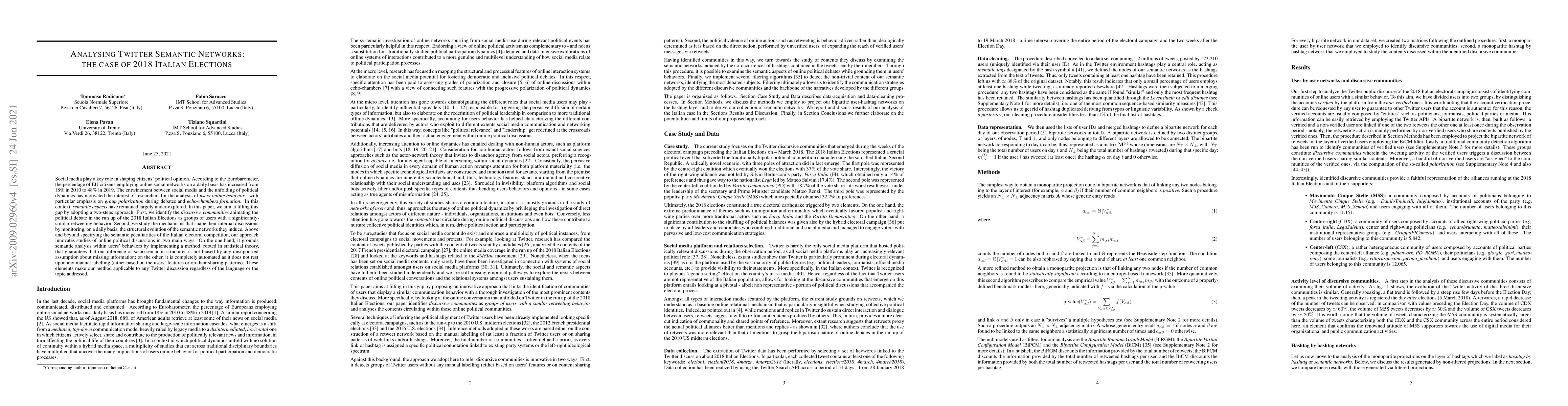 This study analyzes Twitter semantic networks before the 2018 Italian Elections to identify discursive communities and understand how users engage in online discussions. It introduces an automated method for analyzing semantic structures without manual labeling, making it applicable to various Twitter discussions.