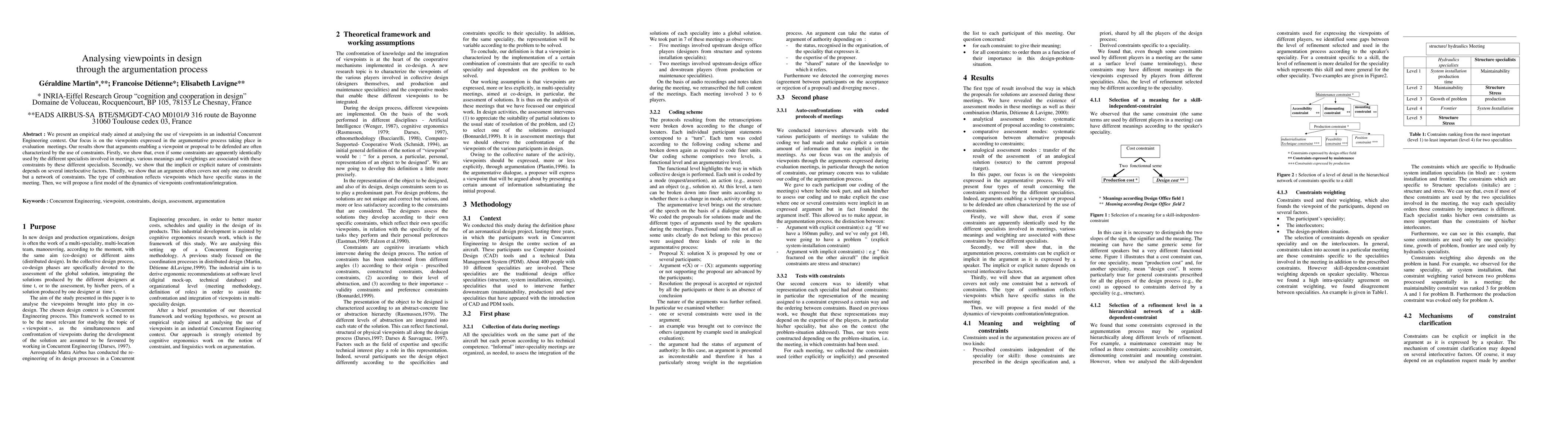 We present an empirical study aimed at analysing the use of viewpoints in an industrial Concurrent Engineering context. Our focus is on the viewpoints expressed in the argumentative process taking place in evaluation meetings. Our results show that arguments enabling a viewpoint or proposal to be defended are often characterized by the use of constraints. Firstly, we show that, even if some constraints are apparently identically used by the different specialists involved in meetings, various meanings and weightings are associated with these constraints by these different specialists. Secondly, we show that the implicit or explicit nature of constraints depends on several interlocutive factors. Thirdly, we show that an argument often covers not only one constraint but a network of constraints. The type of combination reflects viewpoints which have specific status in the meeting. Then, we will propose a first model of the dynamics of viewpoints confrontation/integration.
