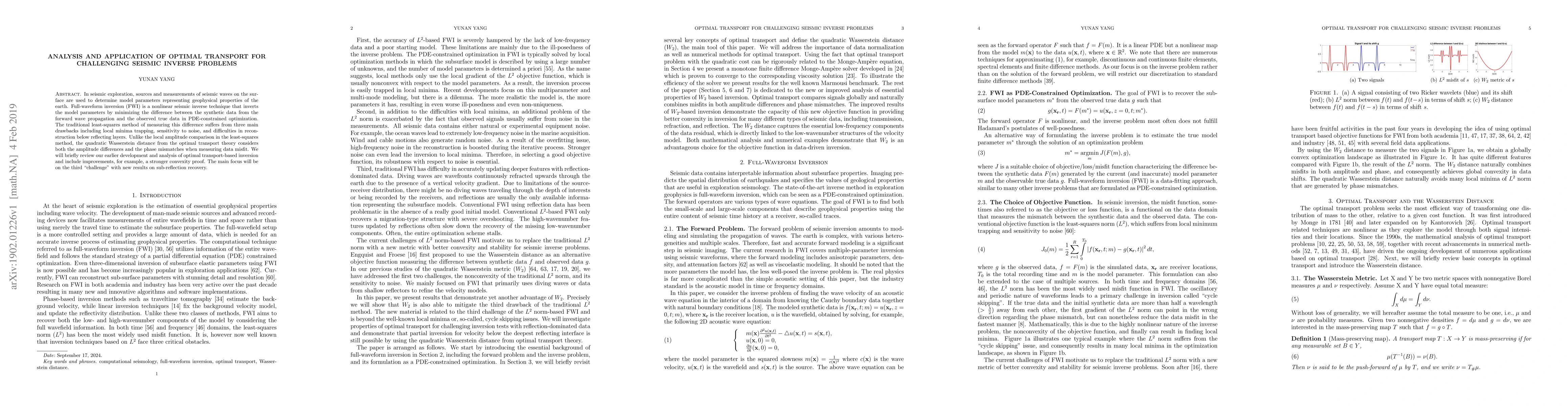This research paper applies optimal transport theory to seismic inversion problems, improving upon traditional methods by reducing noise sensitivity and enhancing sub-reflection recovery, offering a more robust solution for geophysical properties estimation.