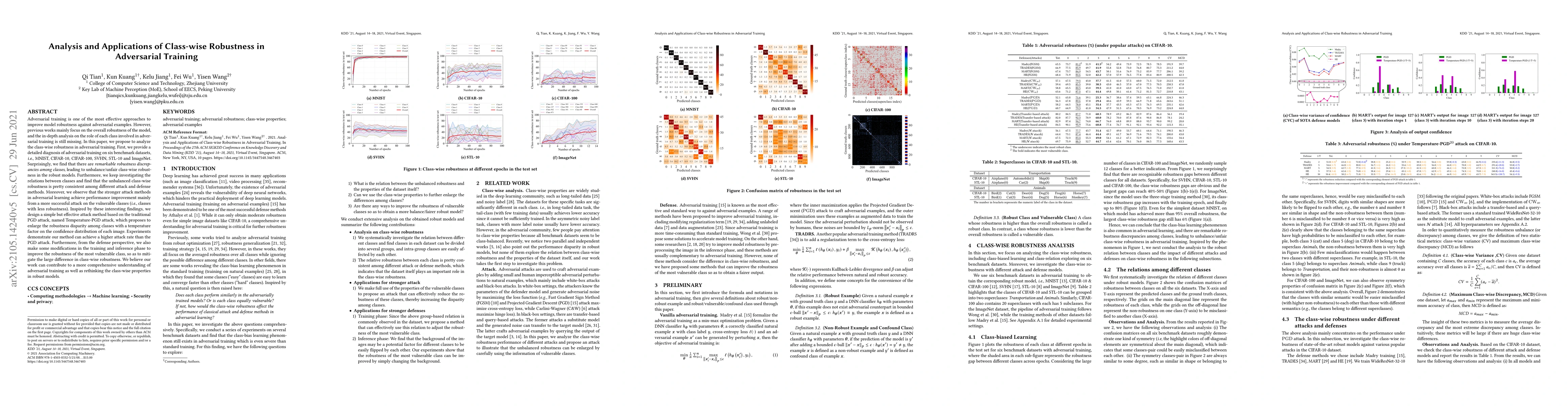This paper analyzes class-wise robustness in adversarial training, revealing significant discrepancies among classes in robust models across six datasets. It proposes a new attack method, Temperature-PGD, to exploit these disparities and suggests modifications to improve the weakest classes' robustness, aiming to achieve a more balanced class-wise robustness.