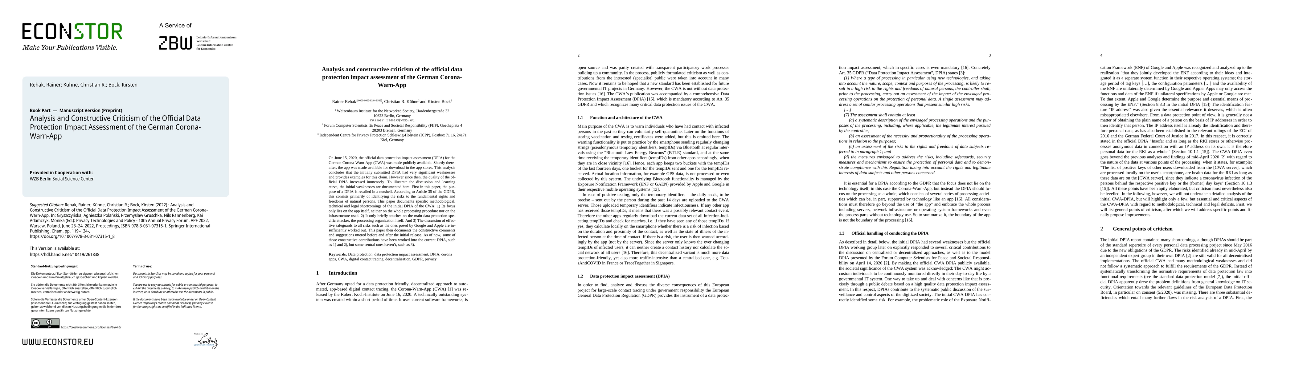 The research methodology involved a critical analysis of the official Data Protection Impact Assessment (DPIA) for the German Corona-Warn-App, comparing it against GDPR requirements and best practices.