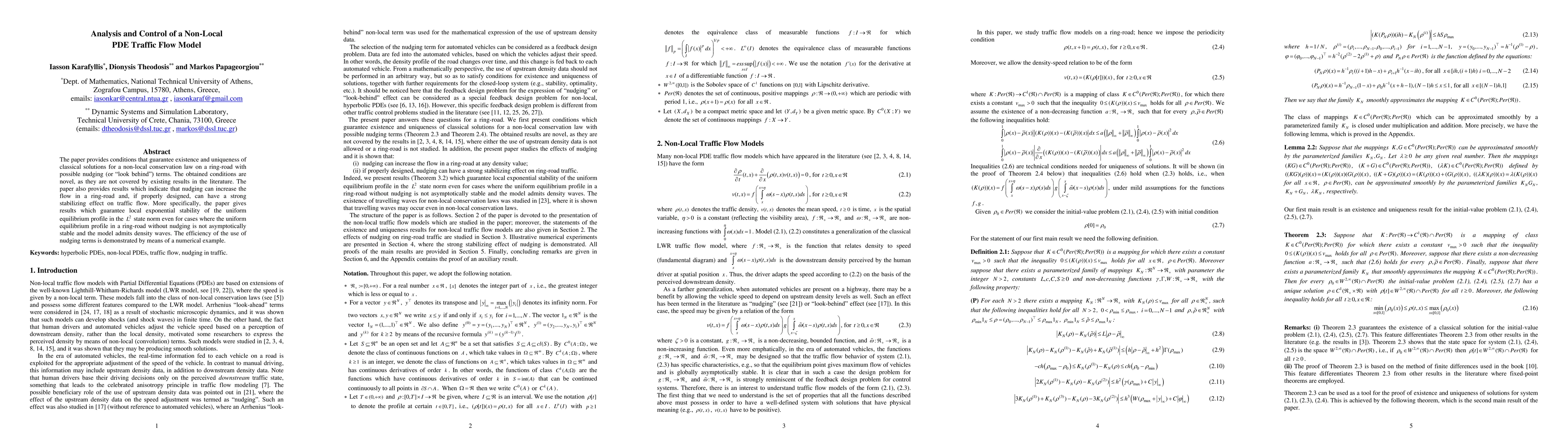 This paper analyzes a non-local PDE traffic flow model with nudging terms, showing that they can increase flow in ring-roads and stabilize traffic, even when the uniform equilibrium is not asymptotically stable.