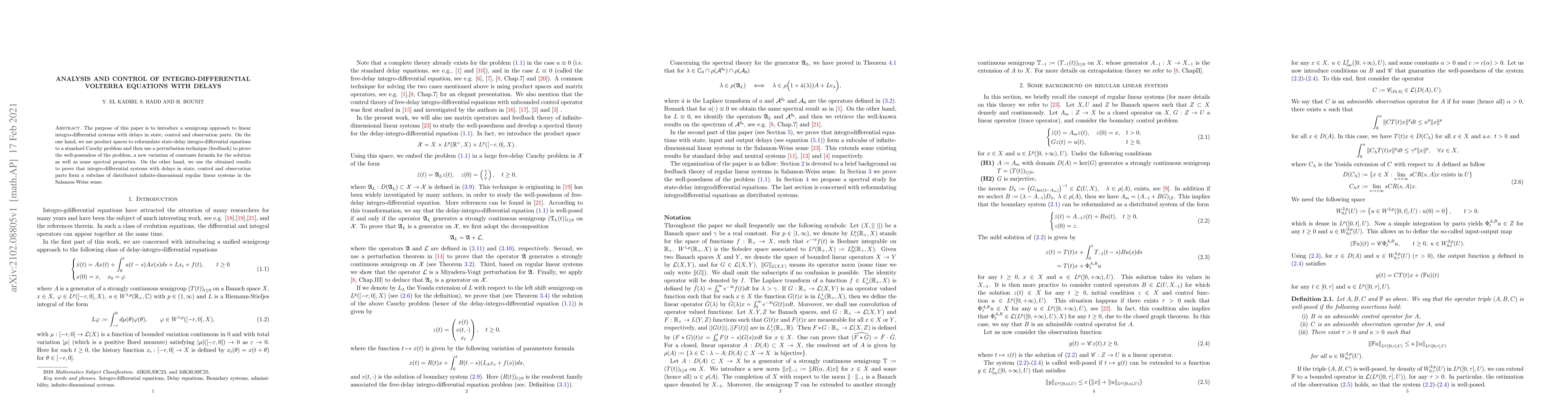 This paper introduces a semigroup approach to solve integro-differential Volterra equations with delays in state, control, and observation parts, providing new formulas for solutions and spectral properties.
