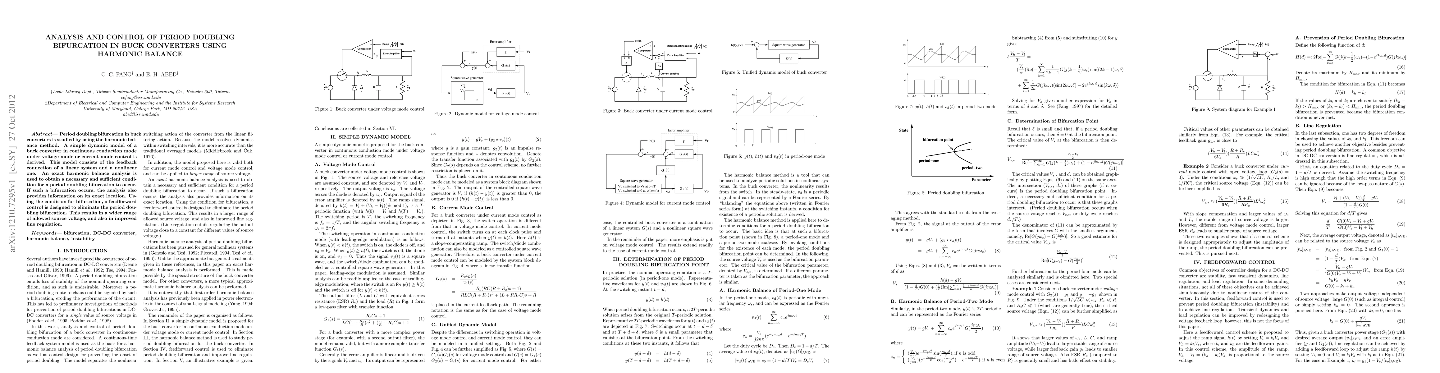 This paper analyzes period doubling bifurcation in buck converters using harmonic balance, deriving a dynamic model and conditions for bifurcation. It proposes a feedforward control method to eliminate bifurcation, enhancing stability and regulation.