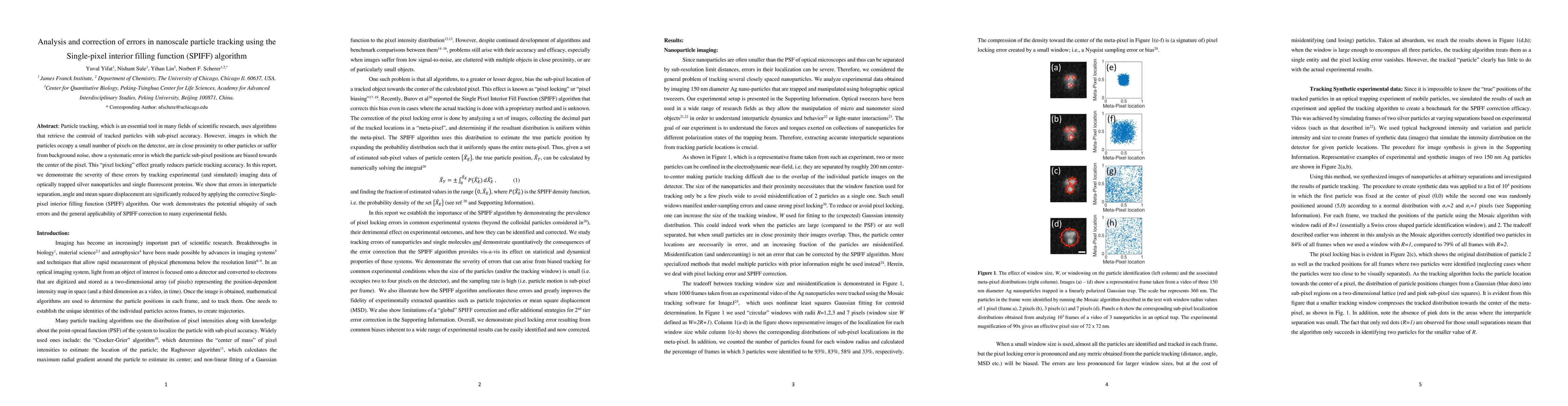 Particle tracking, which is an essential tool in many fields of scientific research, uses algorithms that retrieve the centroid of tracked particles with sub-pixel accuracy. However, images in which the particles occupy a small number of pixels on the detector, are in close proximity to other particles or suffer from background noise, show a systematic error in which the particle sub-pixel positions are biased towards the center of the pixel. This pixel locking effect greatly reduces particle tracking accuracy. In this report, we demonstrate the severity of these errors by tracking experimental (and simulated) imaging data of optically trapped silver nanoparticles and single fluorescent proteins. We show that errors in interparticle separation, angle and mean square displacement are significantly reduced by applying the corrective Single- pixel interior filling function (SPIFF) algorithm. Our work demonstrates the potential ubiquity of such errors and the general applicability of SPIFF correction to many experimental fields.