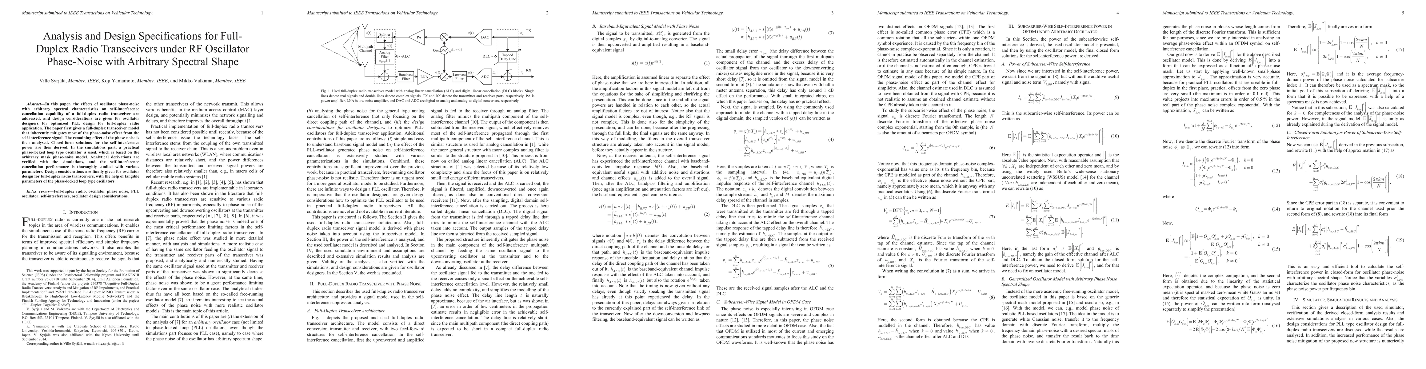 This paper analyzes the impact of oscillator phase-noise with arbitrary spectral characteristics on the self-interference cancellation in full-duplex radio transceivers, providing design specifications for optimized phase-locked loop (PLL) design. Analytical and simulation results demonstrate the remaining phase-noise effects and offer practical design considerations for PLL oscillators.