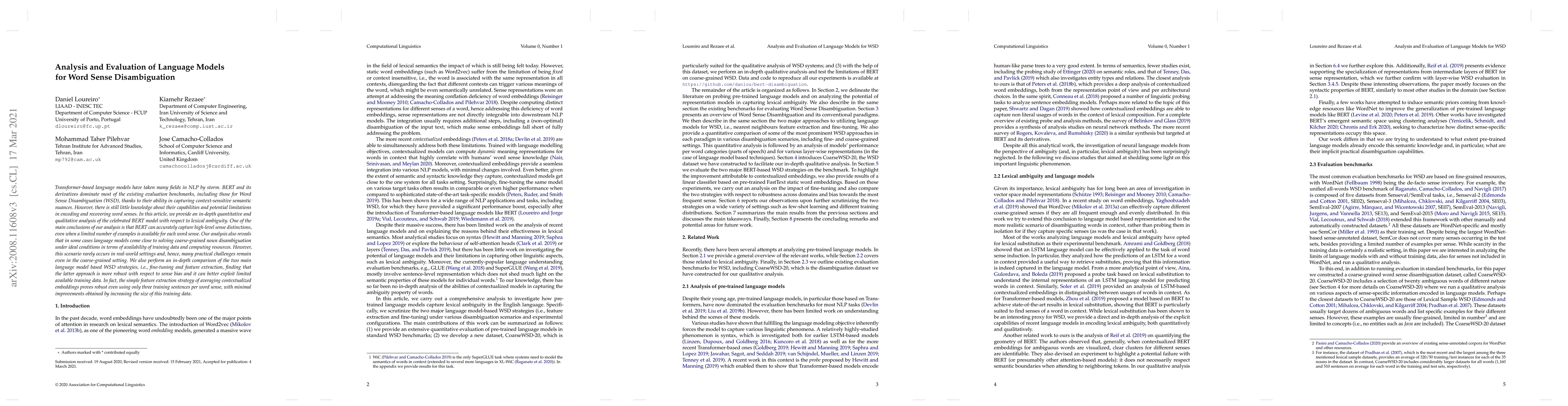 Transformer-based language models have taken many fields in NLP by storm. BERT and its derivatives dominate most of the existing evaluation benchmarks, including those for Word Sense Disambiguation (WSD), thanks to their ability in capturing context-sensitive semantic nuances. However, there is still little knowledge about their capabilities and potential limitations in encoding and recovering word senses. In this article, we provide an in-depth quantitative and qualitative analysis of the celebrated BERT model with respect to lexical ambiguity. One of the main conclusions of our analysis is that BERT can accurately capture high-level sense distinctions, even when a limited number of examples is available for each word sense. Our analysis also reveals that in some cases language models come close to solving coarse-grained noun disambiguation under ideal conditions in terms of availability of training data and computing resources. However, this scenario rarely occurs in real-world settings and, hence, many practical challenges remain even in the coarse-grained setting. We also perform an in-depth comparison of the two main language model based WSD strategies, i.e., fine-tuning and feature extraction, finding that the latter approach is more robust with respect to sense bias and it can better exploit limited available training data. In fact, the simple feature extraction strategy of averaging contextualized embeddings proves robust even using only three training sentences per word sense, with minimal improvements obtained by increasing the size of this training data.