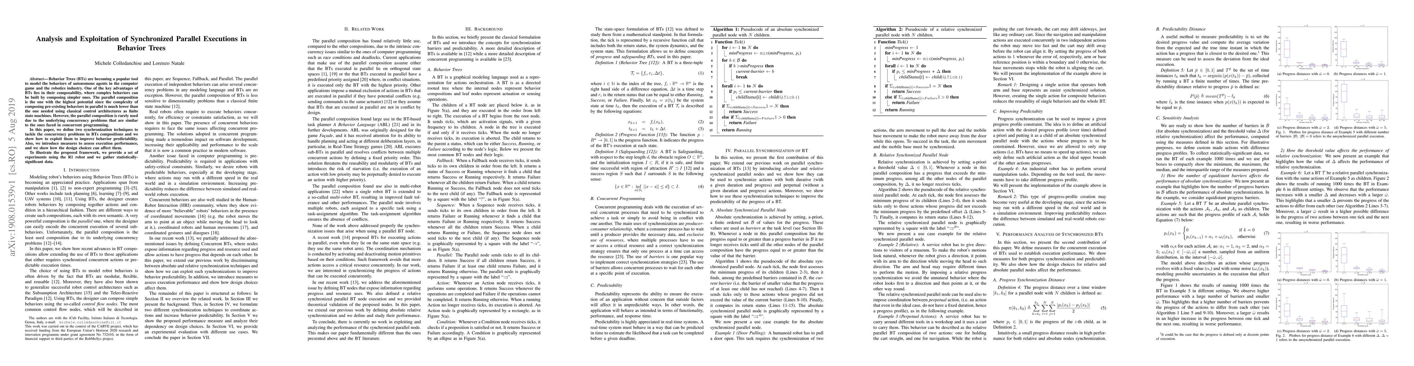 Behavior Trees (BTs) are becoming a popular tool to model the behaviors of autonomous agents in the computer game and the robotics industry. One of the key advantages of BTs lies in their composability, where complex behaviors can be built by composing simpler ones. The parallel composition is the one with the highest potential since the complexity of composing pre-existing behaviors in parallel is much lower than the one needed using classical control architectures as finite state machines. However, the parallel composition is rarely used due to the underlying concurrency problems that are similar to the ones faced in concurrent programming. In this paper, we define two synchronization techniques to tackle the concurrency problems in BTs compositions and we show how to exploit them to improve behavior predictability. Also, we introduce measures to assess execution performance, and we show how design choices can affect them. To illustrate the proposed framework, we provide a set of experiments using the R1 robot and we gather statistically-significant data.