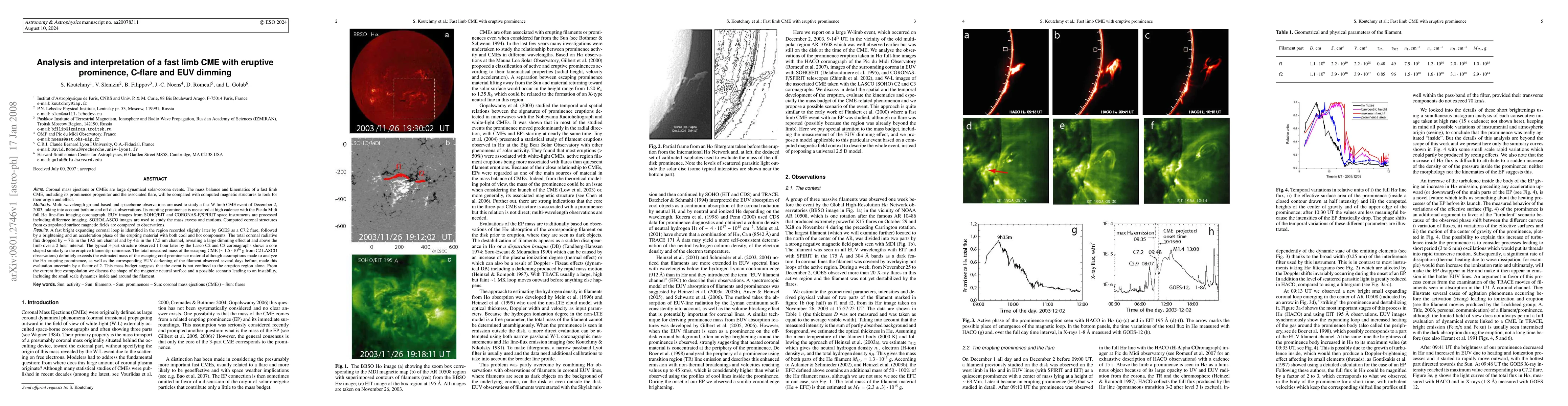 This paper analyzes a fast limb CME on December 2, 2003, using multi-wavelength observations, revealing a C7.2 flare and significant EUV dimming. The study finds that the escaping CME mass exceeds the prominence mass, suggesting complex magnetic interactions and dynamics.