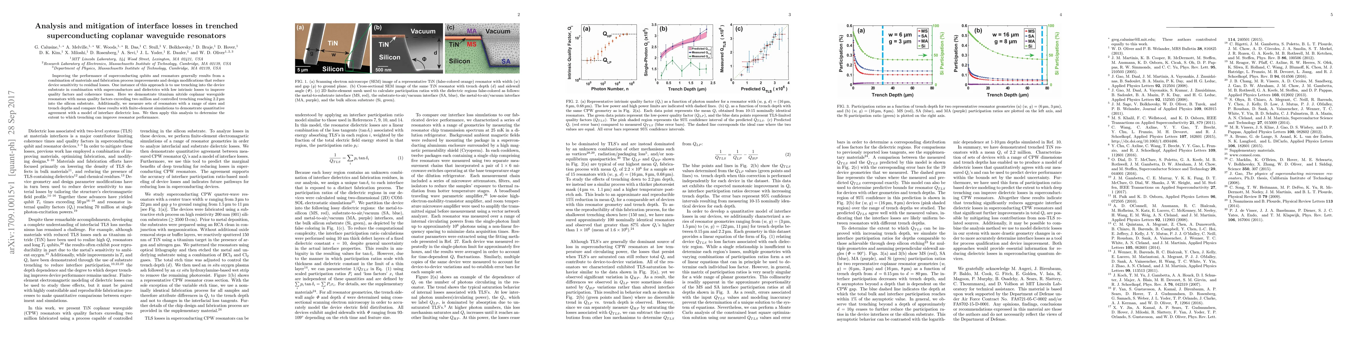 This paper investigates the use of trenching in superconducting coplanar waveguide resonators to mitigate interface losses, achieving mean quality factors exceeding two million. The study combines experimental results with finite-element simulations to quantify the impact of trench depth on performance and demonstrates the potential for enhanced coherence times.