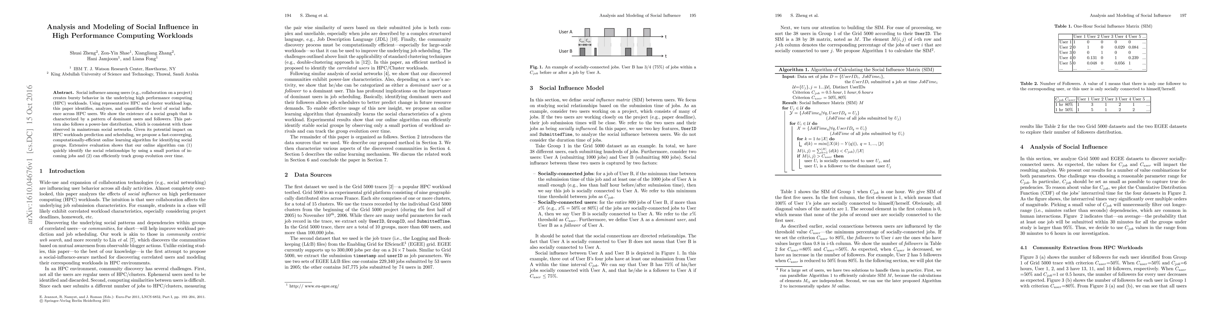 Researchers analyzed social influence in high performance computing workloads, finding a pattern of dominant users and followers that follows a power-law distribution, with an efficient online learning algorithm to track group evolution over time.