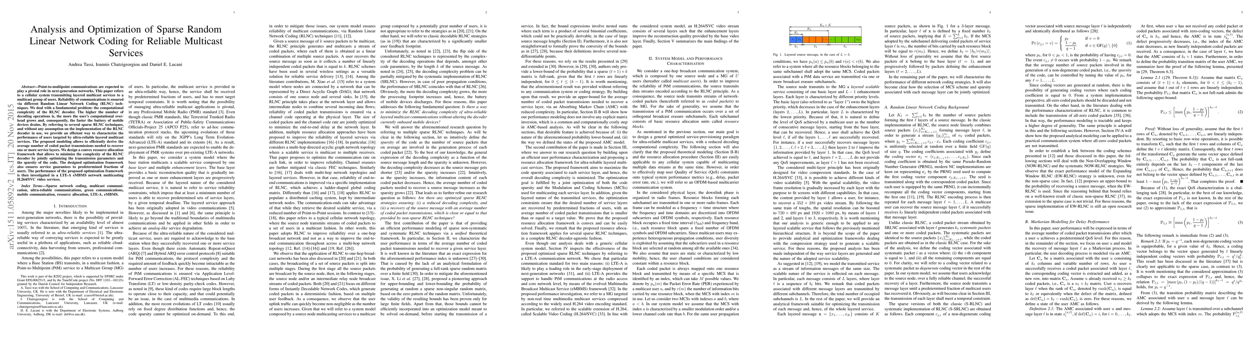 This paper analyzes and optimizes sparse Random Linear Network Coding for reliable multicast services, focusing on minimizing decoder complexity to reduce mobile device battery drain. It proposes a convex optimization framework to jointly optimize transmission parameters and code sparsity, ensuring service guarantees for specific user groups.