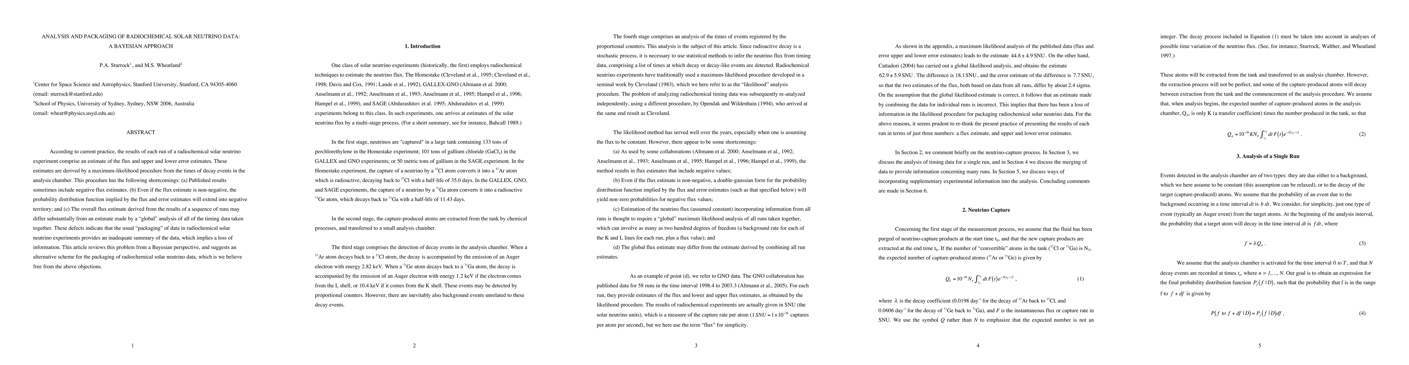 According to current practice, the results of each run of a radiochemical solar neutrino experiment comprise an estimate of the flux and upper and lower error estimates. These estimates are derived by a maximum-likelihood procedure from the times of decay events in the analysis chamber. This procedure has the following shortcomings: (a) Published results sometimes include negative flux estimates. (b) Even if the flux estimate is non-negative, the probability distribution function implied by the flux and error estimates will extend into negative territory; and (c) The overall flux estimate derived from the results of a sequence of runs may differ substantially from an estimate made by a global analysis of all of the timing data taken together. These defects indicate that the usual packaging of data in radiochemical solar neutrino experiments provides an inadequate summary of the data, which implies a loss of information. This article reviews this problem from a Bayesian perspective, and suggests an alternative scheme for the packaging of radiochemical solar neutrino data, which is we believe free from the above objections.