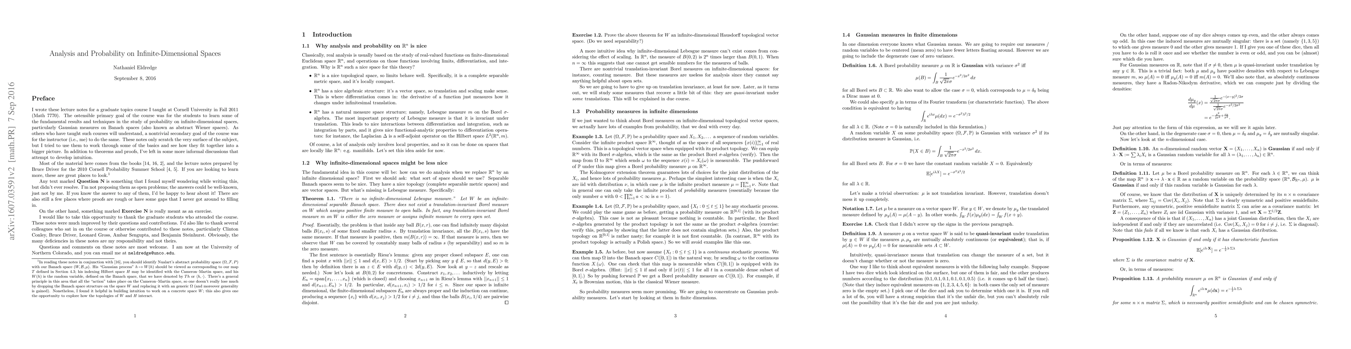 This paper introduces key concepts in analysis and probability within infinite-dimensional spaces, focusing on Gaussian measures in Banach spaces. It serves as lecture notes from a 2011 Cornell University course.