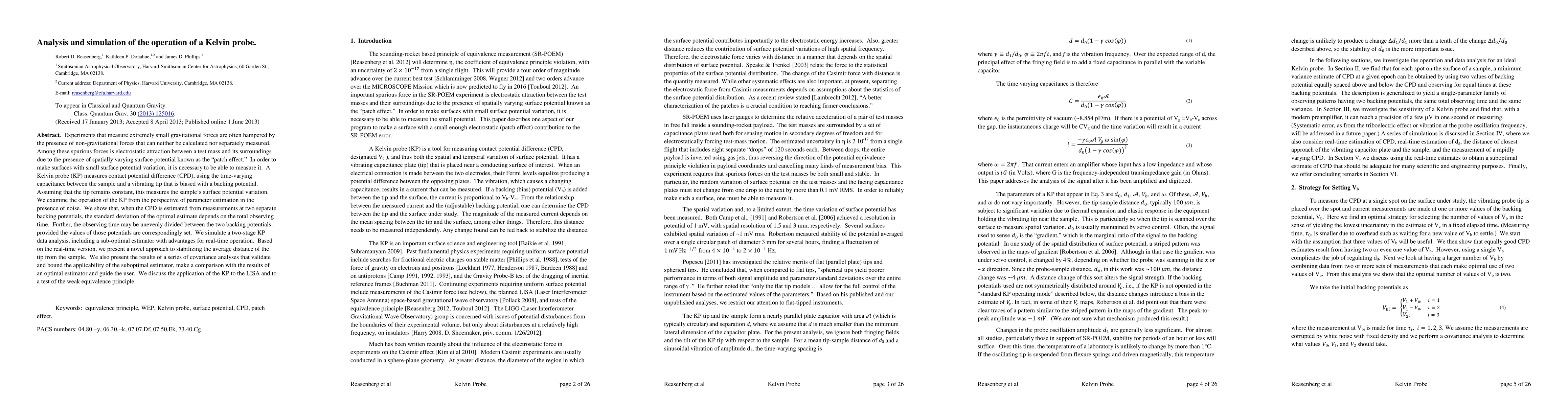 Experiments that measure extremely small gravitational forces are often hampered by the presence of non-gravitational forces that can neither be calculated nor separately measured. Among these spurious forces is electrostatic attraction between a test mass and its surroundings due to the presence of spatially varying surface potential known as the "patch effect." In order to make surfaces with small surface potential variation, it is necessary to be able to measure it. A Kelvin probe (KP) measures contact potential difference (CPD), using the time-varying capacitance between the sample and a vibrating tip that is biased with a backing potential. Assuming that the tip remains constant, this measures the sample's surface potential variation. We examine the operation of the KP from the perspective of parameter estimation in the presence of noise. We show that, when the CPD is estimated from measurements at two separate backing potentials, the standard deviation of the optimal estimate depends on the total observing time. Further, the observing time may be unevenly divided between the two backing potentials, provided the values of those potentials are correspondingly set. We simulate a two-stage KP data analysis, including a sub-optimal estimator with advantages for real-time operation. Based on the real-time version, we present a novel approach to stabilizing the average distance of the tip from the sample. We also present the results of a series of covariance analyses that validate and bound the applicability of the suboptimal estimator, make a comparison with the results of an optimal estimator and guide the user. We discuss the application of the KP to the LISA and to a test of the weak equivalence principle.