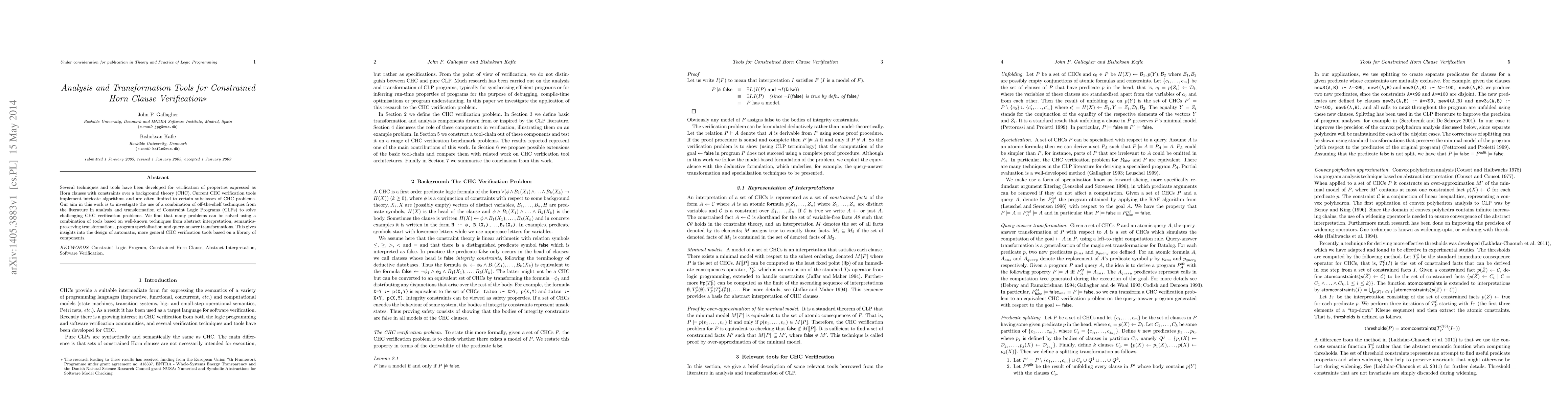 Researchers developed a new approach to solving constrained Horn Clause verification problems using existing techniques from abstract interpretation and semantics-preserving transformations.