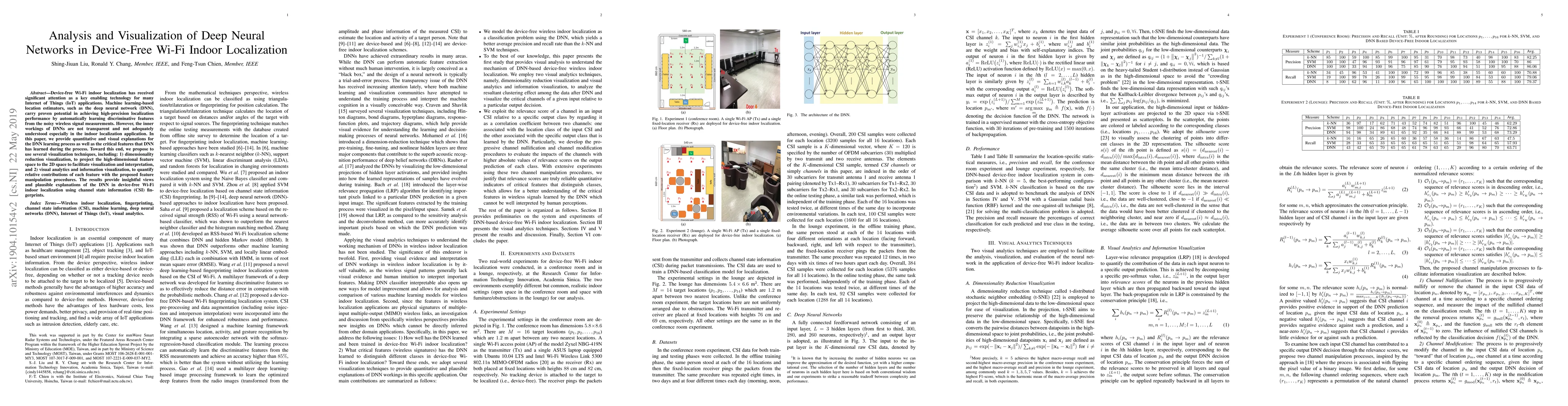This paper investigates the inner workings of deep neural networks (DNNs) used in device-free Wi-Fi indoor localization, employing visualization techniques to explain the learning process and the features DNNs extract from noisy wireless signals. The study uses dimensionality reduction and visual analytics to provide insights into DNN performance and feature contributions.