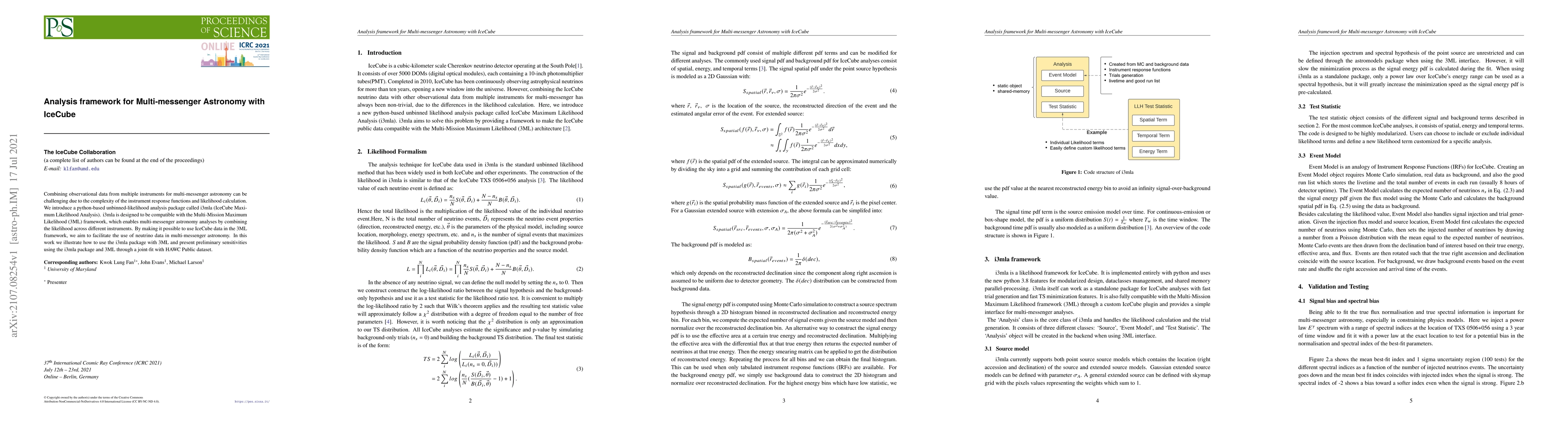 Combining observational data from multiple instruments for multi-messenger astronomy can be challenging due to the complexity of the instrument response functions and likelihood calculation. We introduce a python-based unbinned-likelihood analysis package called i3mla (IceCube Maximum Likelihood Analysis). i3mla is designed to be compatible with the Multi-Mission Maximum Likelihood (3ML) framework, which enables multi-messenger astronomy analyses by combining the likelihood across different instruments. By making it possible to use IceCube data in the 3ML framework, we aim to facilitate the use of neutrino data in multi-messenger astronomy. In this work we illustrate how to use the i3mla package with 3ML and present preliminary sensitivities using the i3mla package and 3ML through a joint-fit with HAWC Public dataset.