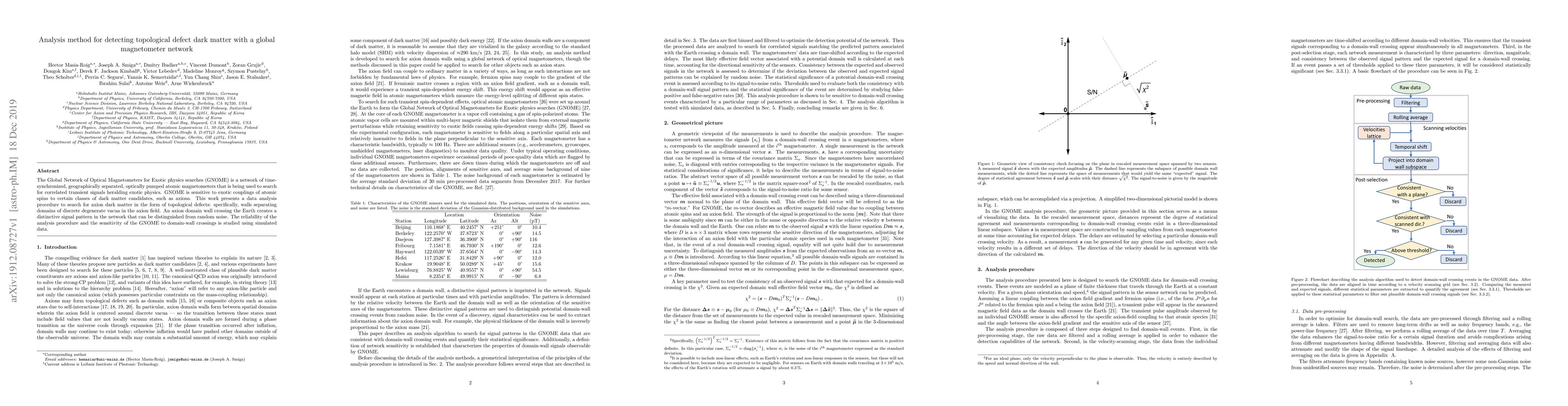 A new analysis method detects topological defect dark matter by analyzing signals from a network of atomic magnetometers, which can distinguish between exotic physics signals and random noise. The method's sensitivity is tested with simulated data, showing promise for future searches.