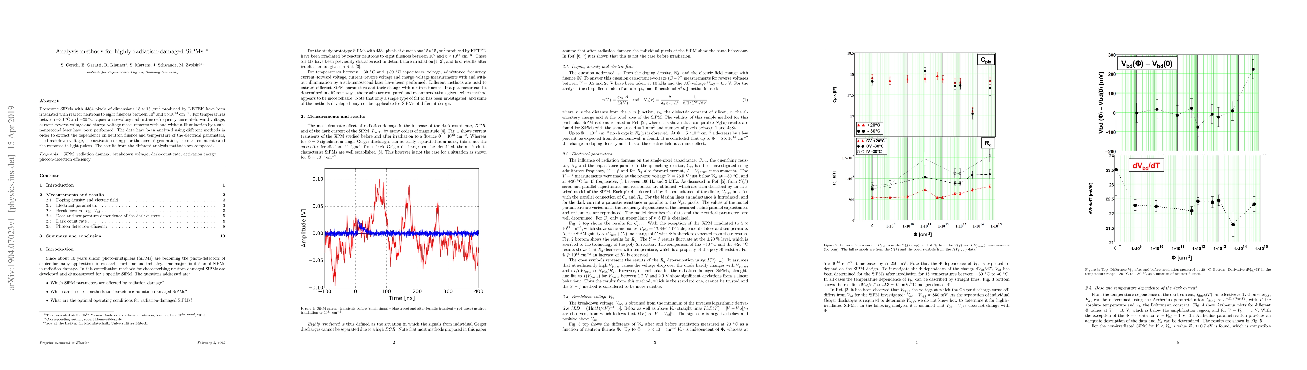 Researchers studied the effects of high levels of radiation on SiPMs, a type of photodetector used in imaging applications. They found that different analysis methods yield varying results for parameters such as breakdown voltage and dark-count rate.