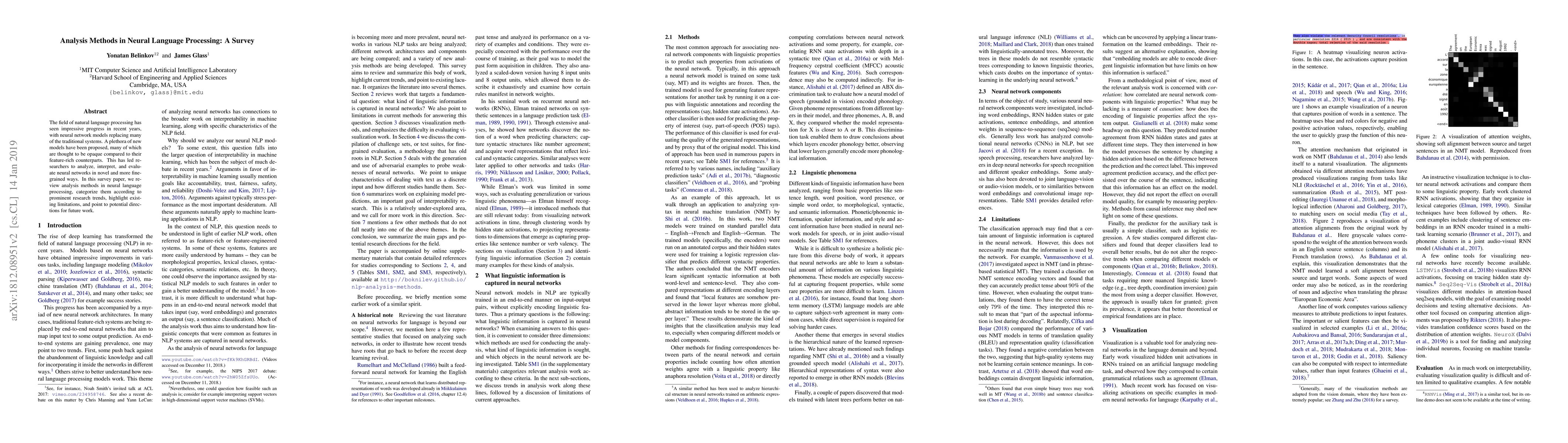 This paper surveys analysis methods for neural language processing, categorizing them by trends and highlighting their limitations to guide future research. It aims to interpret and evaluate neural networks, which have largely replaced traditional systems in natural language processing.
