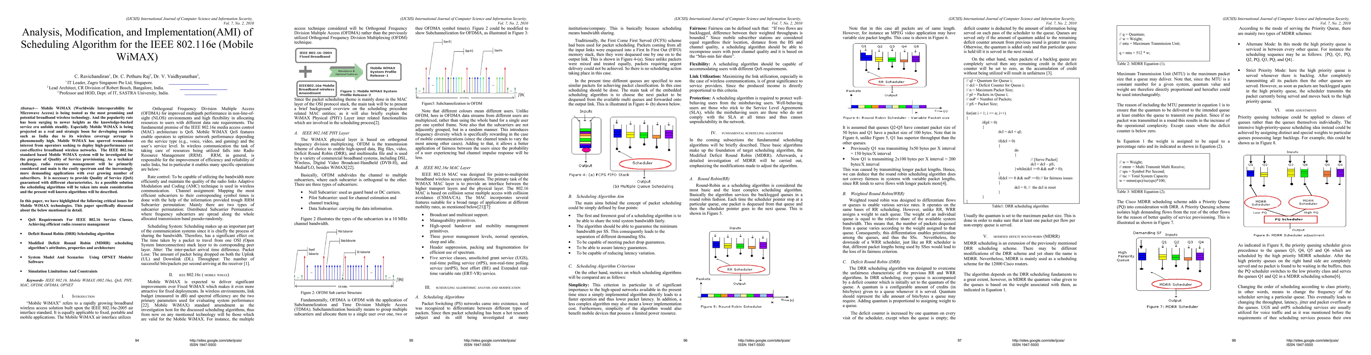 This paper analyzes, modifies, and implements a scheduling algorithm for the IEEE 802.16e (Mobile WiMAX) standard to enhance Quality of Service (QoS) provisioning. It focuses on efficient radio resource management, comparing the Deficit Round Robin (DRR) and a newly proposed Modified Deficit Round Robin (MDRR) algorithm, and simulates these using OPNET Modeler software.