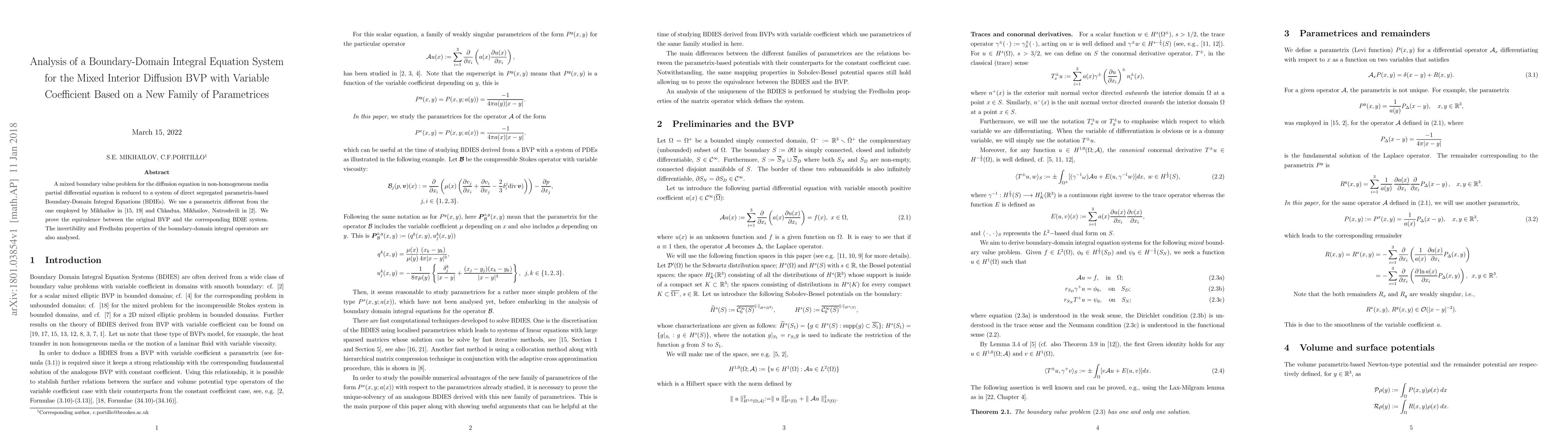 This paper analyzes a new parametrix-based Boundary-Domain Integral Equation (BDIE) system for solving a mixed interior diffusion boundary value problem in non-homogeneous media. The authors prove equivalence and uniqueness of the solution using the Fredholm Alternative and analyze the boundedness and compactness properties of the new parametrix in Sobolev spaces.