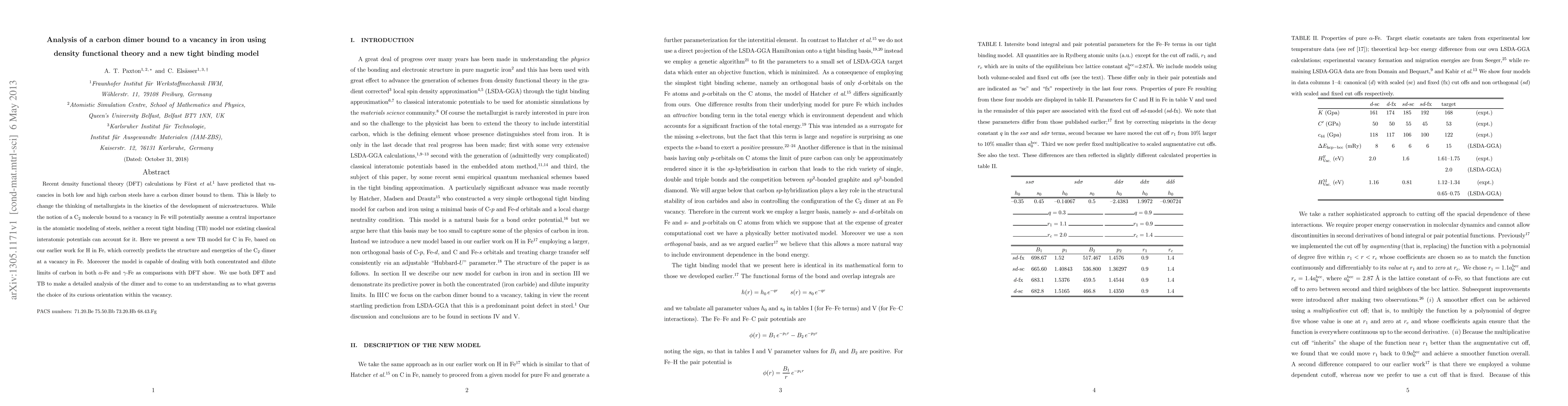 The study provides insights into the orientation of the bound dimer within the vacancy, with implications for metallurgists and atomistic modeling of steels.