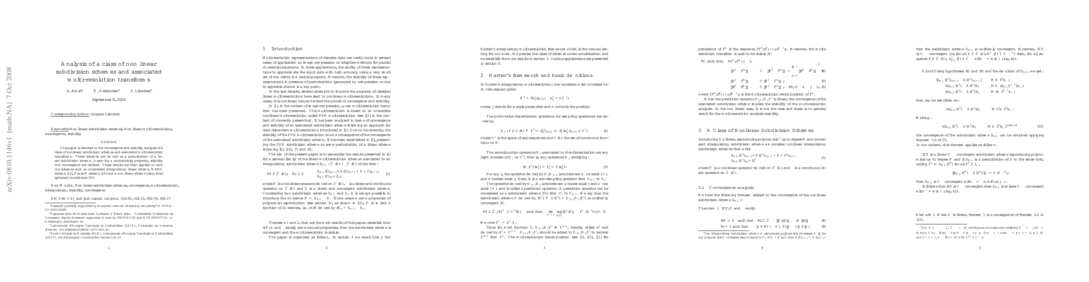 This paper is devoted to the convergence and stability analysis of a class of nonlinear subdivision schemes and associated multi-resolution transforms. These schemes are defined as a perturbation of a linear subdivision scheme. Assuming a contractivity property, stability and convergence are derived. These results are then applied to various schemes such as uncentered interpolatory linear scheme, WENO scheme [13], Power-P scheme [16] and a non linear scheme using local spherical coordinates [18].