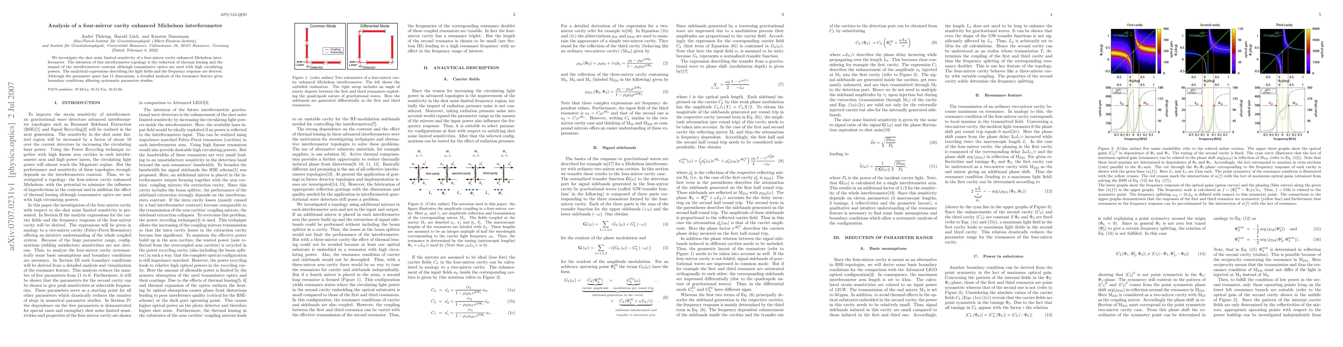 We investigate the shot noise limited sensitivity of a four-mirror cavity enhanced Michelson interferometer. The intention of this interferometer topology is the reduction of thermal lensing and the impact of the interferometers contrast although transmissive optics are used with high circulating powers. The analytical expressions describing the light fields and the frequency response are derived. Although the parameter space has 11 dimensions, a detailed analysis of the resonance feature gives boundary conditions allowing systematic parameter studies.