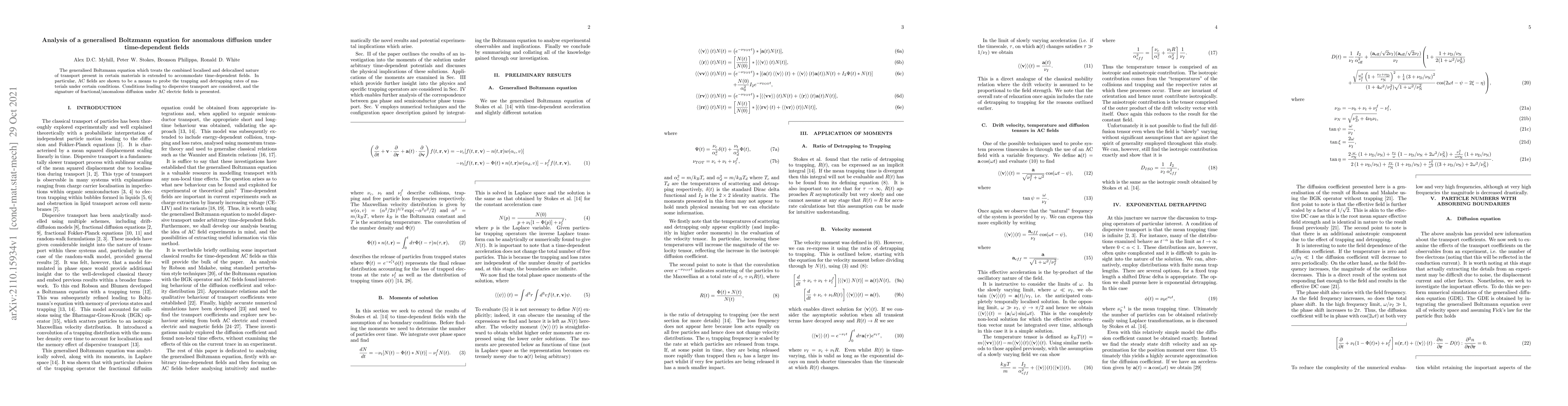 The generalised Boltzmann equation which treats the combined localised and delocalised nature of transport present in certain materials is extended to accommodate time-dependent fields. In particular, AC fields are shown to be a means to probe the trapping and detrapping rates of materials under certain conditions. Conditions leading to dispersive transport are considered, and the signature of fractional/anomalous diffusion under AC electric fields is presented.