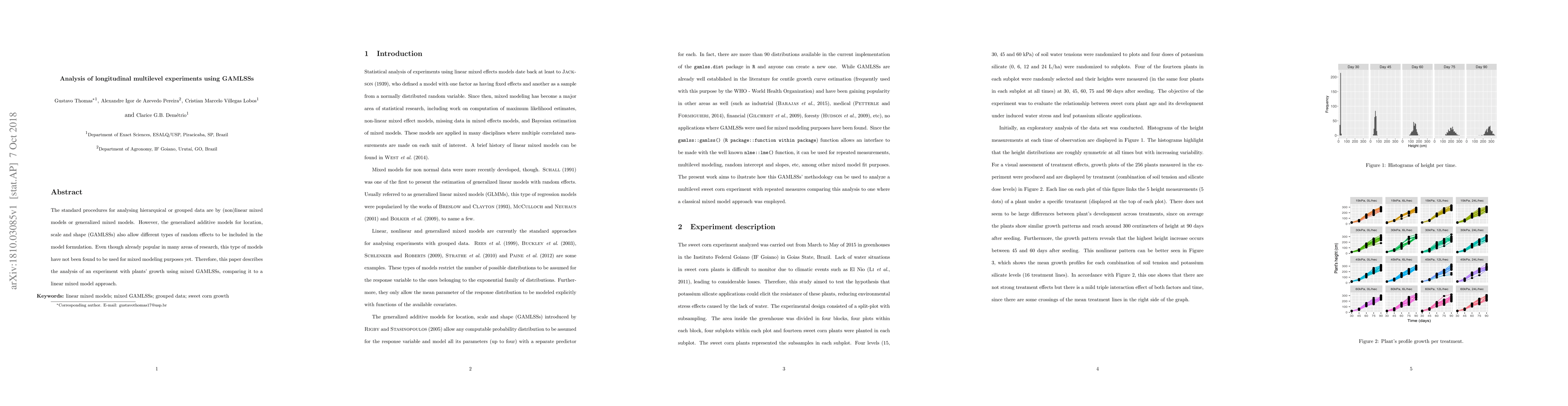 The standard procedures for analysing hierarquical or grouped data are by (non)linear mixed models or generalized mixed models. However, the generalized additive models for location, scale and shape (GAMLSSs) also allow different types of random effects to be included in the model formulation. Even though already popular in many areas of research, this type of models have not been found to be used for mixed modeling purposes yet. Therefore, this paper describes the analysis of an experiment with plants' growth using mixed GAMLSSs, comparing it to a linear mixed model approach.
