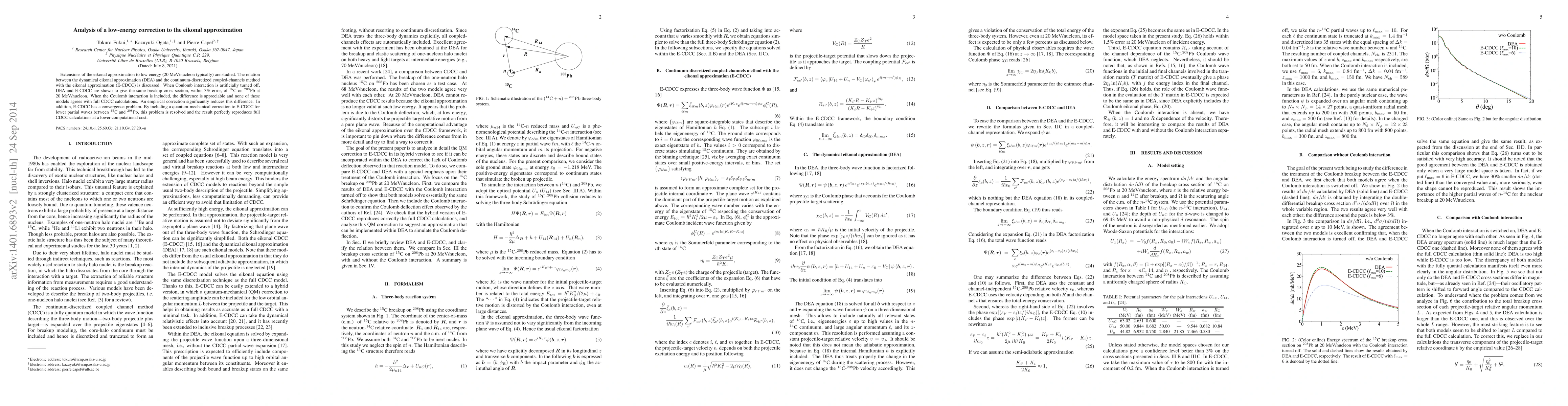 This paper analyzes low-energy corrections to the eikonal approximation, comparing the dynamical eikonal approximation (DEA) and the continuum-discretized coupled-channels method (E-CDCC) for $^{15}$C on $^{208}$Pb at 20 MeV/nucleon. An empirical correction resolves discrepancies when Coulomb interactions are included, and a quantum-mechanical correction resolves E-CDCC's convergence issues, achieving full CDCC accuracy at reduced computational cost.