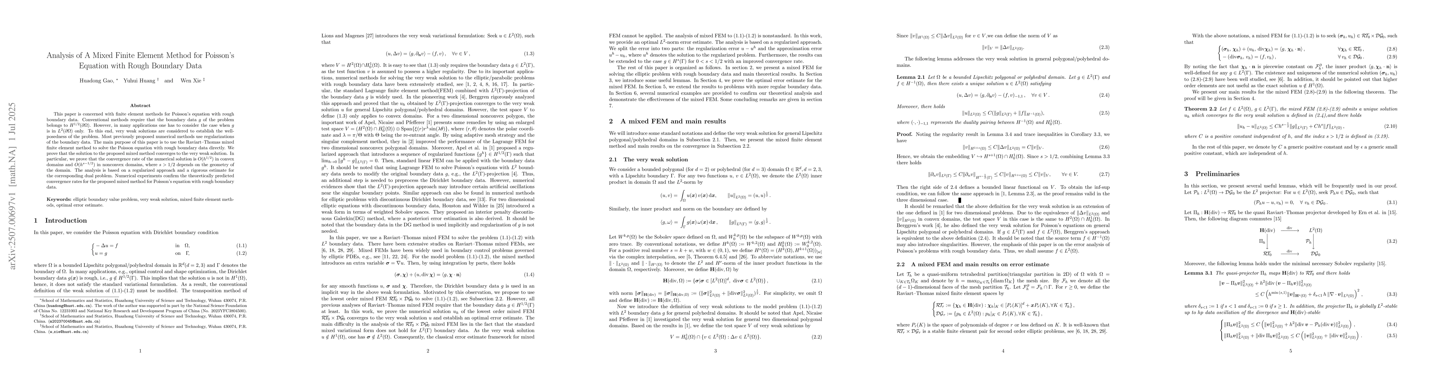 This paper is concerned with finite element methods for Poisson's equation with rough boundary data. Conventional methods require that the boundary data $g$ of the problem belongs to $H^{1/2} (\partial \Omega)$. However, in many applications one has to consider the case when $g$ is in $L^2(\partial \Omega)$ only. To this end, very weak solutions are considered to establish the well-posedness of the problem. Most previously proposed numerical methods use regularizations of the boundary data. The main purpose of this paper is to use the Raviart--Thomas mixed finite element method to solve the Poisson equation with rough boundary data directly. We prove that the solution to the proposed mixed method converges to the very weak solution. In particular, we prove that the convergence rate of the numerical solution is $O(h^{1/2})$ in convex domains and $O(h^{s-1/2})$ in nonconvex domains, where $s > 1/2$ depends on the geometry of the domain. The analysis is based on a regularized approach and a rigorous estimate for the corresponding dual problem. Numerical experiments confirm the theoretically predicted convergence rates for the proposed mixed method for Poisson's equation with rough boundary data.