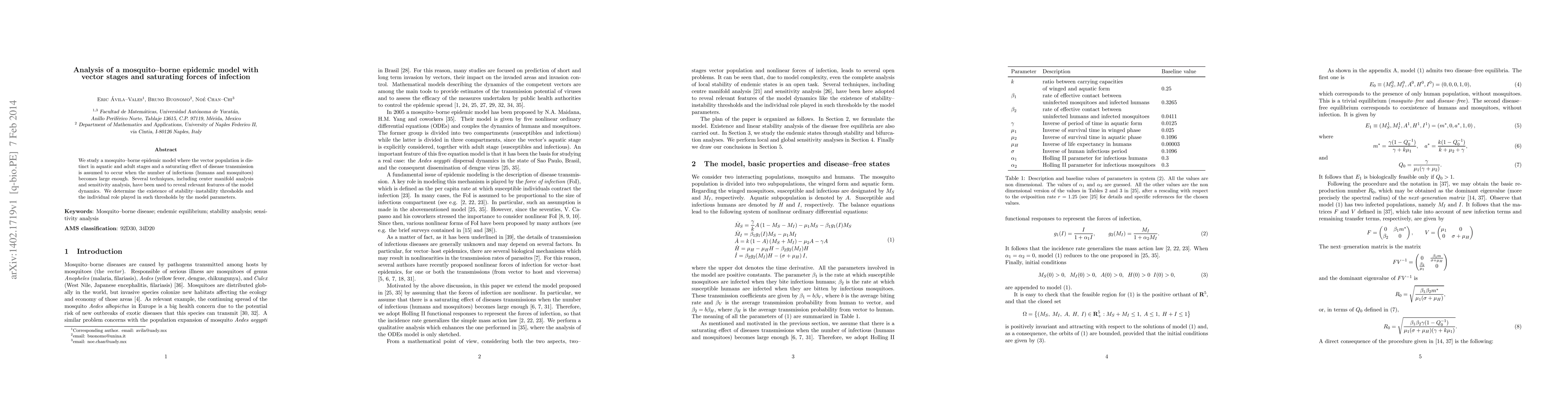 Researchers analyzed a mosquito-borne epidemic model to understand the role of vector stages and disease transmission thresholds in determining stability-instability boundaries. Their study reveals key parameters that influence these thresholds and highlights the importance of considering these factors in modeling such diseases.