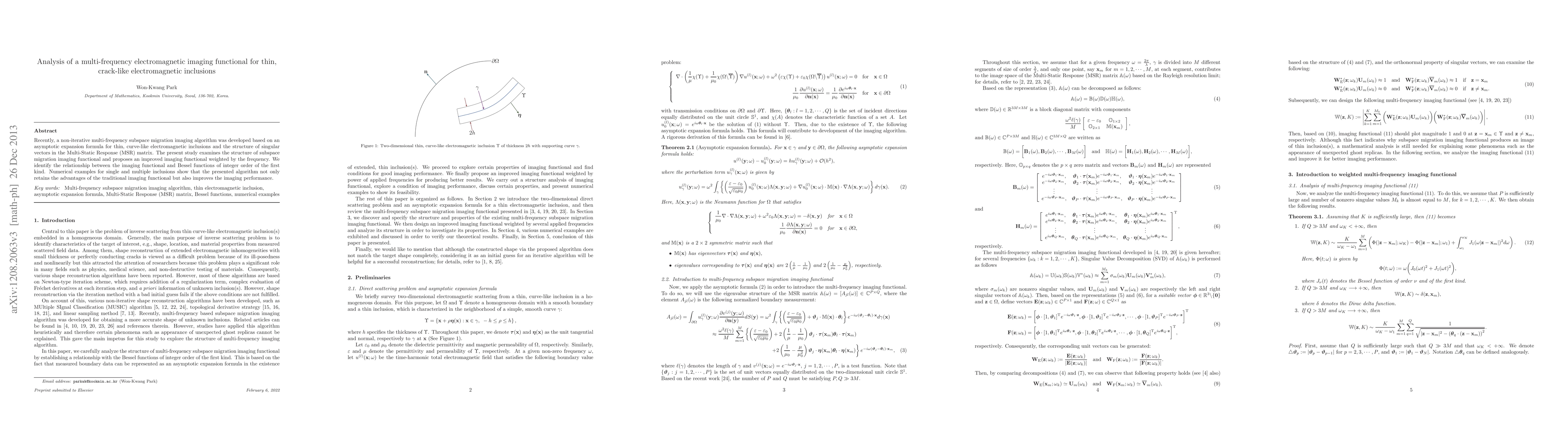 Recently, a non-iterative multi-frequency subspace migration imaging algorithm was developed based on an asymptotic expansion formula for thin, curve-like electromagnetic inclusions and the structure of singular vectors in the Multi-Static Response (MSR) matrix. The present study examines the structure of subspace migration imaging functional and proposes an improved imaging functional weighted by the frequency. We identify the relationship between the imaging functional and Bessel functions of integer order of the first kind. Numerical examples for single and multiple inclusions show that the presented algorithm not only retains the advantages of the traditional imaging functional but also improves the imaging performance.