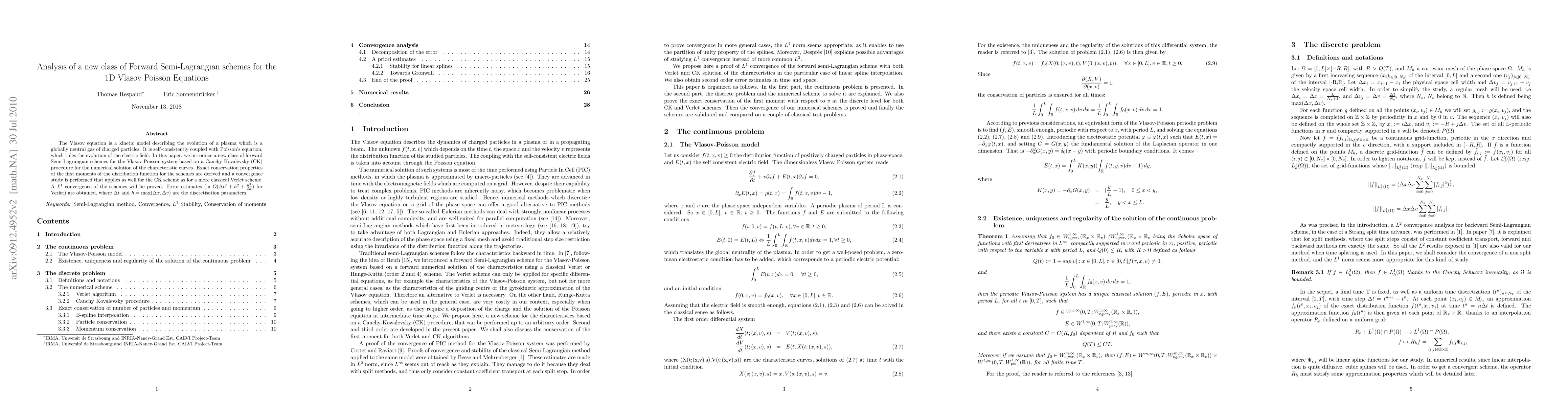 Researchers developed a new class of numerical schemes for solving the Vlasov-Poisson Equations, which describe the behavior of charged particles and electric fields, with focus on conservation properties and convergence.