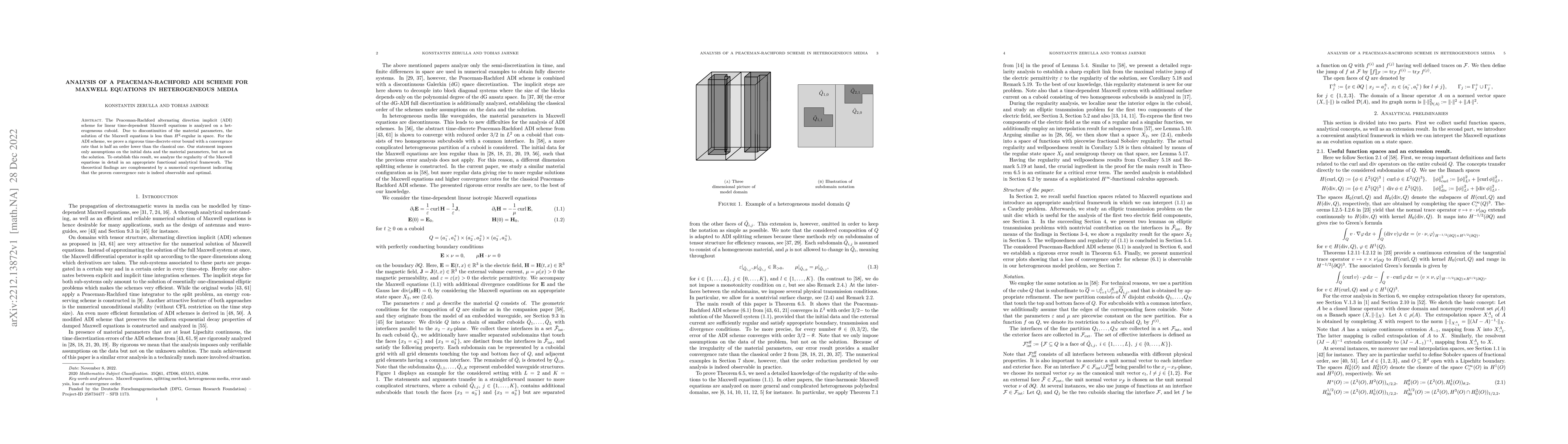 This paper analyzes the Peaceman-Rachford ADI scheme for solving Maxwell equations in heterogeneous media, proving a rigorous time-discrete error bound with a convergence rate half an order lower than classical methods. The analysis accounts for material parameter discontinuities and supports the findings with a numerical experiment.