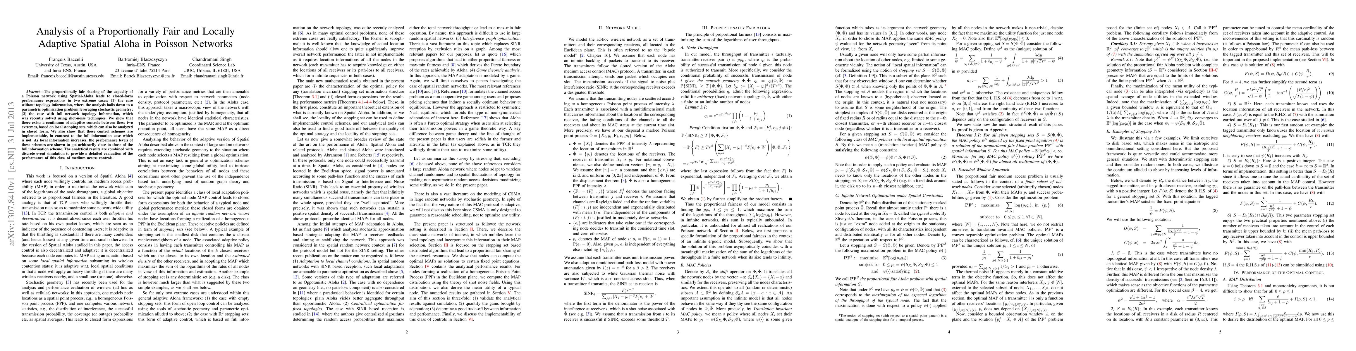 The proportionally fair sharing of the capacity of a Poisson network using Spatial-Aloha leads to closed-form performance expressions in two extreme cases: (1) the case without topology information, where the analysis boils down to a parametric optimization problem leveraging stochastic geometry; (2) the case with full network topology information, which was recently solved using shot-noise techniques. We show that there exists a continuum of adaptive controls between these two extremes, based on local stopping sets, which can also be analyzed in closed form. We also show that these control schemes are implementable, in contrast to the full information case which is not. As local information increases, the performance levels of these schemes are shown to get arbitrarily close to those of the full information scheme. The analytical results are combined with discrete event simulation to provide a detailed evaluation of the performance of this class of medium access controls.