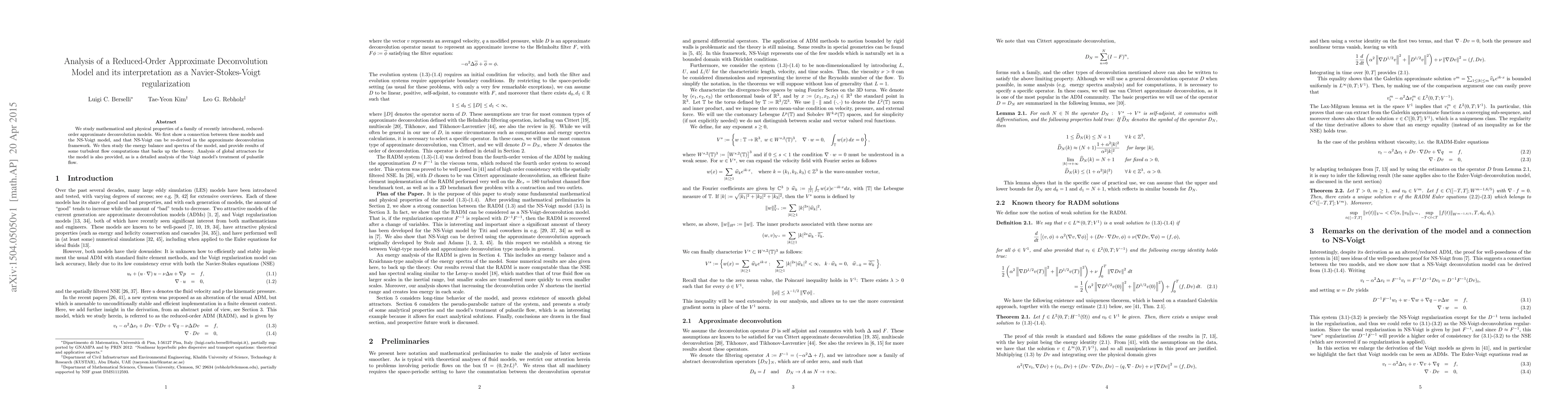 This paper analyzes reduced-order approximate deconvolution models, linking them to the Navier-Stokes-Voigt (NS-Voigt) regularization model, and examines their energy balance, spectra, and turbulent flow computations. It also investigates global attractors and the Voigt model's handling of pulsatile flow.