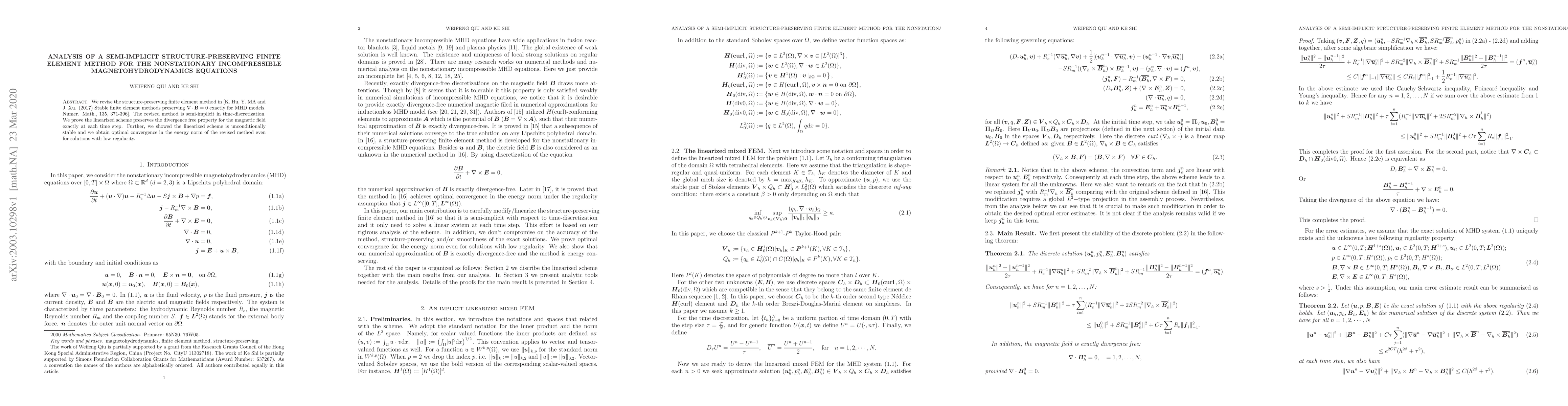 This paper revises a structure-preserving finite element method for nonstationary incompressible Magnetohydrodynamics (MHD) equations, introducing a semi-implicit time-discretization that exactly preserves the divergence-free property of the magnetic field. The revised method is shown to be unconditionally stable and achieves optimal convergence even for low-regularity solutions.